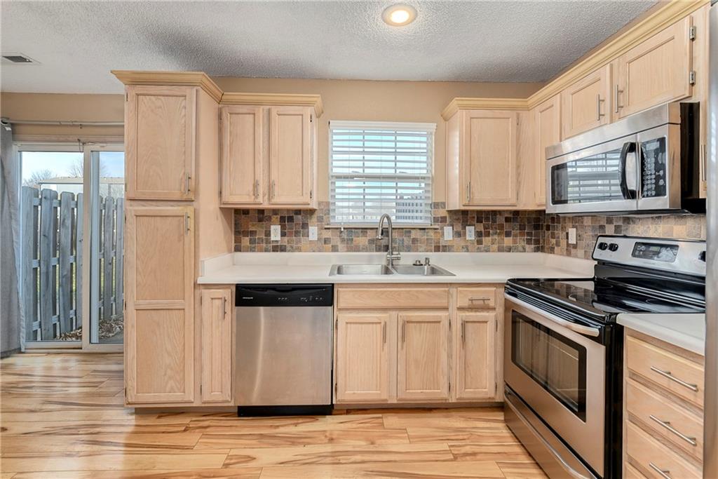 Move right in! So many updates in this unit - Garbage disposal & Primary bath vanity light (2025), Carpet (2023), HVAC replaced with High Efficiency unit & Google Fiber (2022), Replaced all bathroom vanities with Custom Birch taller vanities & installed garage attic sheetrock (2021), Washer & Dryer, Primary bath shower door, smoke detectors (2 detectors are smoke & Co2), painted living room/kitchen/2nd bedroom, & replaced fluorescent light in kitchen (2019). The living room is very cozy with the gas fireplace. The two bedrooms are a good size for the Primary suite and office/guest bedroom. The laundry is conveniently located in the hall bath. All the appliances stay with the property - SS kitchen appliances including the refrigerator plus the newer washer and dryer. The level south facing garage is a bonus (direct sun to melt snow and ice). Great location - close to schools, shopping, and easy access to highway.