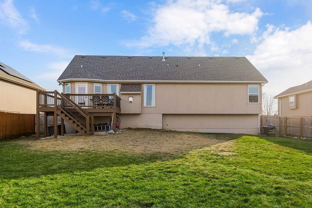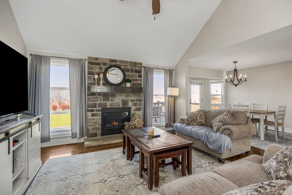 Now available in Pleasant Hill—this home has it all! Enjoy peace of mind with a brand-new roof and step inside to a stunning Great Room featuring soaring ceilings, a cozy fireplace, and beautiful walnut hardwood floors. The bright white kitchen shines with granite countertops, custom cabinetry, a NEW stainless steel refrigerator, and other newer appliances—perfect for everyday living and entertaining. The main level primary suite showcases gorgeous wood ceiling details and two closets including a walk-in, while the luxurious primary bath offers dual sinks, a whirlpool tub, and a walk-in shower. You will find two more bedrooms on the upper level with blinds and walk-in closets, and a tiled full bath with shower/tub. A rare bonus, this home features two primary suites, including a second private retreat in the lower level complete with a HUGE closet and safe room. The tiled lower-level full bath adds even more convenience. Outside, enjoy a fully fenced yard with a privacy fence, upper deck with stairs down for entertaining, plus neighborhood lake access stocked with fish—ideal for relaxing weekends and outdoor fun. Socket Fiber is new to the area. This is one you won’t want to miss!