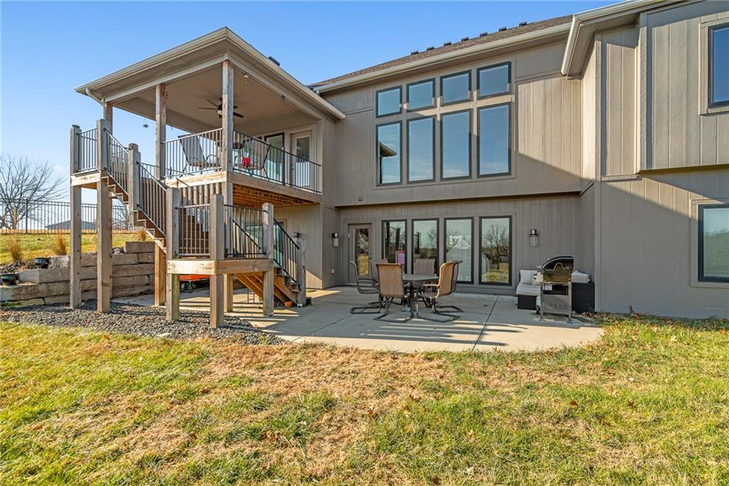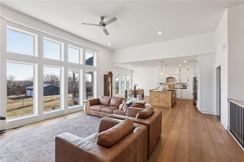 Stop the Car! *** Just over 3 years young *** ALL ONE LEVEL living *** 5 acres *** Liberty! Built by reputable Heartland Homes: perfect blend of modern luxury, peaceful acreage, and everyday convenience with — NOOOO HOA!!! Thoughtful upgrades throughout. 5 acres JUST outside of town, get the privacy and nature without sacrificing quick access to amenities. 4 bedrooms, 3.5 baths, and 3,228 sq ft—a floorplan that’s spacious enough to live comfortably yet easy to maintain. The craftsmanship shines from the moment you walk in with so many upgrades: vaulted ceilings, white oak cabinetry, wood floors throughout, and luxury live edge granite, upgraded floor to ceiling tile in the bathrooms just to name a few. Keep the home clutter free with oversized drop zone & storage galore. The finished walkout basement is a dream space beyond the 2 bedrooms — the rec area is wide open with 10' ceilings, luxury vinyl plank flooring, a wet bar, and endless flexibility. Add bedrooms, create a home gym, design a theater. The possibilities are wide open with the finished AND unfinished space. In fact, plumbing rough-in's already installed for a future dog wash station. Impressive Outdoor living with composite covered deck, a 15' extended patio also partially covered, and plenty of room to add a future pool thanks to lateral lines thoughtfully placed to the south side. The property includes two tax parcels under one legal description, giving you the option to designate one as agricultural if desired. Property is all electric. A huge bonus: the 30' x 50' outbuilding with concrete floors—perfect for equipment, hobbies, vehicles, or a workshop. Has 3 overhead doors (two on north and one on east). Located in the sought after Liberty School District, this home offers the rare combination of acreage, upgrades, convenience, and freedom. And yes… no HOA!!!