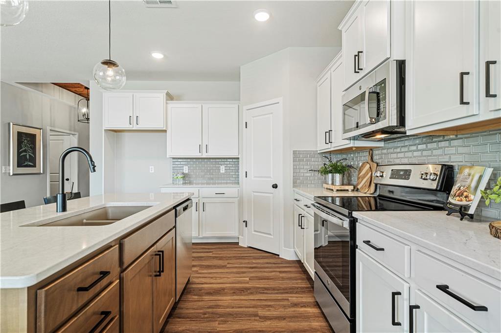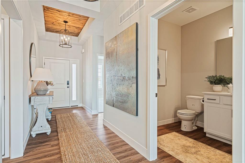 Welcome to the innovative design and modern style of Ashlar Homes! The popular Graysen plan, featuring the Modern Heritage elevation. Experience the perfect blend of modern elegance and functional design in this stunning new construction ranch. This home features high-end James Hardie® board with ColorPlus® Technology siding and advanced double-wall construction. Spanning 1,683 square feet on the main level, the home welcomes you with an open-concept great room featuring a dramatic box vault ceiling with custom car siding detail and a floor-to-ceiling stone fireplace with a wood mantle. The chef-inspired kitchen is equipped with Frigidaire® stainless steel appliances, a gas stove, beautiful quartz countertops, and a custom tiled backsplash. Retreat to the expanded primary suite, which boasts a ceiling fan and a luxurious bathroom finished with tiled floors, a walk-in tiled shower, and quartz vanities. Attention to detail is evident throughout with an upgraded trim package featuring taller baseboards and fully trimmed windows. Outside, enjoy a widened driveway leading to an insulated three-car garage, and relax on the 12x12 composite deck or lower patio. The massive walk-out unfinished basement is already stubbed for a future bathroom, offering a blank canvas to expand your living space. Come see Spring Hill's newest affordable choice for new home construction, at Fox Hollow! Under construction and Coming Soon! No Physical House yet, at foundation stage.