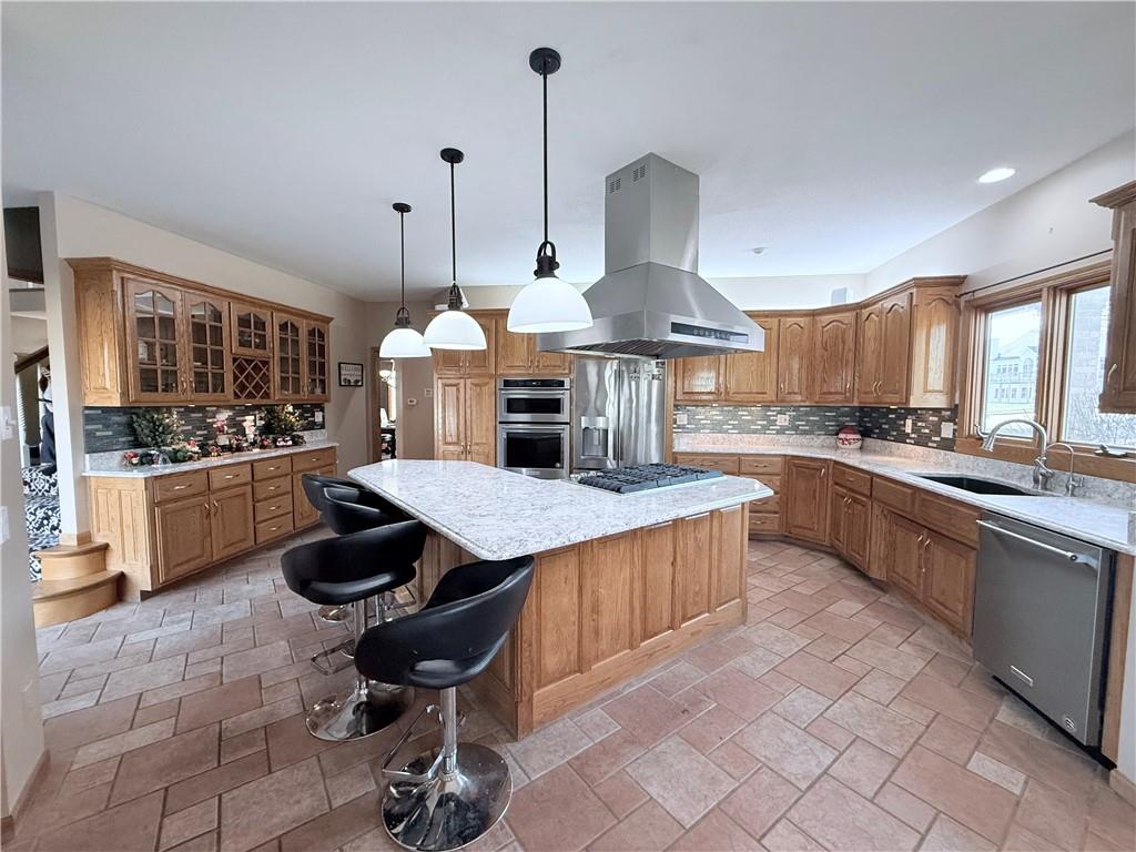 STUNNING APPROXIMATELY 5500 SQ FT TWO-STORY BRICK AND STUCCO HOME WITH A FULLY FINISHED BASEMENT, OFFERING 5 SPACIOUS BEDROOMS AND 4.5 BATHS, SITUATED ON A BEAUTIFULLY LANDSCAPED 1.15-ACRE LOT. ELEGANT SANTOS MAHOGANY FLOORS HIGHLIGHT THE FORMAL DINING ROOM, LIVING ROOM AND WELCOMING ENTRY. ALSO FEATURING SOARING CEILINGS AND A DRAMATIC UPPER-LEVEL OVERLOOK, THIS HOME IS FILLED WITH NATURAL LIGHT AND AN OPEN, AIRY FEEL THAT ENHANCES BOTH SPACE AND FLOW, THE FULLY REMODELED KITCHEN IS A TRUE CENTERPIECE FOR ENTERTAINMENT, FEATURING QUARTZ COUNTERTOPS, A LARGE CENTER ISLAND WITH SEATING, GAS STOVE WITH EXTERIOR-VENTED HOOD AND AN ADDITIONAL EXPANSIVE DINING AREA ARE PERFECT FOR GATHERINGS. ZONED HEATING AND COOLING PROVIDE YEAR-ROUND COMFORT THROUGHOUT THE HOME. THE FINISHED LOWER LEVEL INCLUDES AN OVERSIZED THEATER ROOM AND A RELAXING SAUNA, ADDING A SPA-LIKE RETREAT. OUTDOORS, ENJOY A HUGE FENCED BACKYARD IDEAL FOR ENTERTAINING, PLAY OR PETS, WHILE THE FRONT OF THE HOME OFFERS SERENE VIEWS OVERLOOKING A NEIGHBORING POND. THIS EXCEPTIONAL PROPERTY COMBINES LUXURY SPACE, AND TRANQUILITY IN AN IDEAL SETTING CONVENIENTLY LOCATED TO INTERSTATE AND AMENITIES.