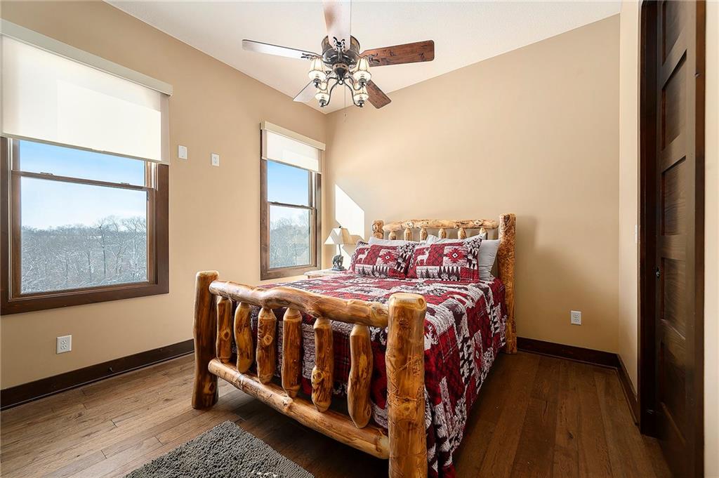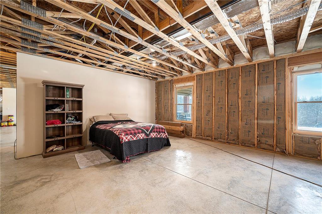 Exceptional custom-built, lodge-inspired home situated on approximately 60± scenic acres, offering privacy, panoramic views, and quality craftsmanship throughout. The home features a striking great room with vaulted ceilings, exposed timber beams, tongue-and-groove pine walls and ceilings, and a floor-to-ceiling stone fireplace with custom built-ins. The kitchen is thoughtfully designed with high-end stainless steel appliances, custom cabinetry, and generous workspace. The primary suite offers a private retreat with a spa-like bath featuring a copper claw-foot soaking tub. Warm wood tones, stone accents, and expansive windows create a seamless connection to the surrounding landscape. Outdoor living includes a covered deck and patio overlooking rolling terrain and timber. The property includes two outbuildings and a mix of open ground and wooded acreage, ideal for hunting, recreation, and nature enjoyment.