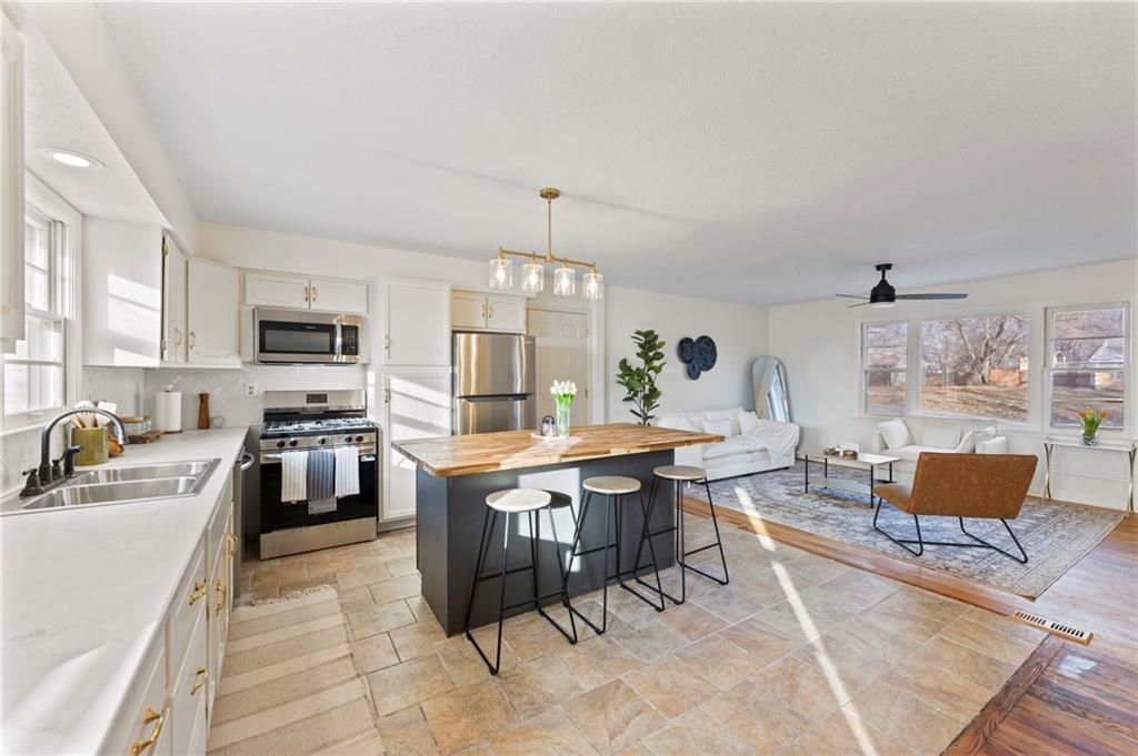 Previous Buyers' Contingency Expired. No inspections were done. Completely remodeled with a lot of new! Beautiful, open floor plan; true ranch on a huge lot with a 26 x 14 outbuilding that has electricity! New roof on both the home and outbuilding! New exterior paint ( on both as well). New driveway, garage, sidewalk, and step. New interior paint; new light fixtures and fans; new hot water heater; fully remodeled bathrooms; new landscaping; new kitchen island; new stainless appliances; new and upgraded electrical panel…too much new to mention! The unfinished basement is the same square footage as the home and is stubbed for a bath. It’s an incredible opportunity to create more beds/baths. This home is perfectly situated near Barry Road and N. Oak Trafficway and near everything you need: shopping, schools, highways, airport, and minutes from downtown! It sits on a cozy street in a quaint neighborhood with no HOA and homes with a lot of character! Remodeled with style and heart; you don’t want to miss this one! Homeowner is an agent. Professional pics to follow!