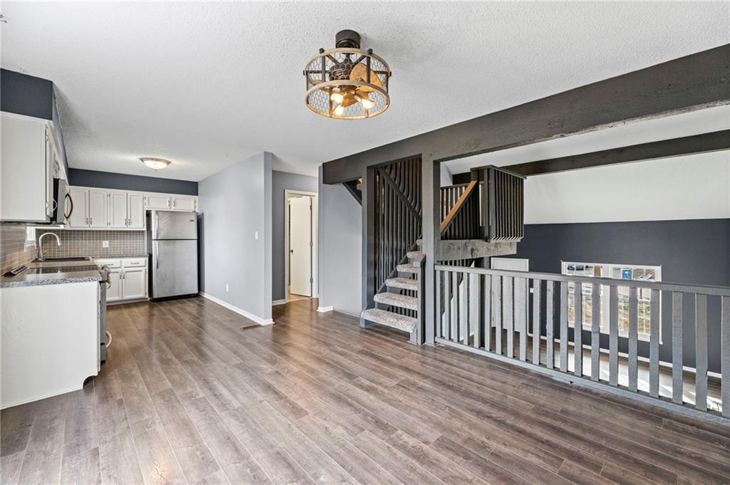 Welcome home to this half duplex in Liberty. Step inside to a cozy living room with vaulted ceilings and a fireplace that sets the tone for relaxed evenings and winter nights in. Just up from the living room, the kitchen and dining area offer a natural gathering space, complete with stainless steel appliances and room to host. The primary suite is conveniently located on this level, giving you a comfortable retreat without being tucked away from the main living areas. Upstairs, you’ll find two additional bedrooms and a full bath, offering flexibility for guests or home office space. The lower level provides ample storage with the bonus of extra living space potential, perfect for a second family room, workout area, or hobby zone. Out back, enjoy a deck overlooking a fenced yard, ready for summer evenings, pets, or low-key weekends at home. Located close to shopping, dining, groceries, gas, and everyday conveniences, with quick access to I-35 for easy commuting. Practical, comfortable, and well-situated, this home is ready for its next chapter.