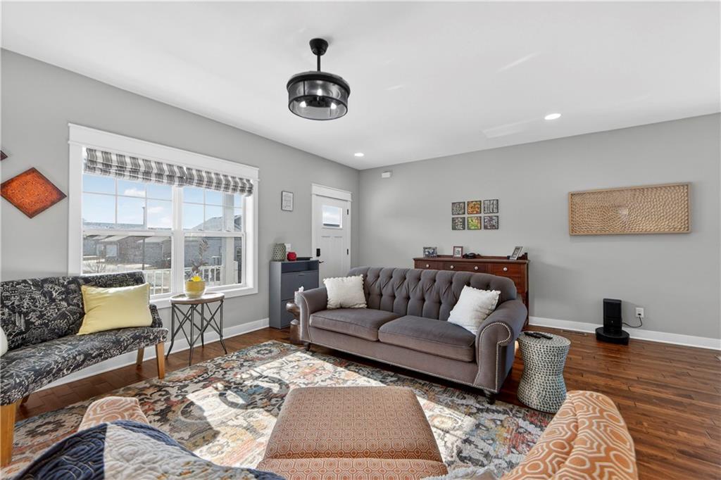 Step inside this thoughtfully upgraded home, where open spaces and abundant natural light highlights designer finishes throughout, creating an atmosphere that feels warm, refined, and intentionally crafted. Plush bedrooms, luxury carpet and padding, and pre-finished hand-scraped Acadia flooring provide a perfect balance of comfort and durability, while upgraded wainscoting, feature walls, plantation shutters, and soft-close cabinetry elevate each space with timeless style. The heart of the home is anchored by a gas fireplace with custom mantel and a well-appointed kitchen featuring a gas range, upgraded plumbing fixtures, and refined details designed for both function and beauty. Atrium doors lead seamlessly to the extended patio, offering serene views and effortless indoor-outdoor living — ideal for morning coffee, evening relaxation, or hosting friends and family. The primary suite is a private retreat, showcasing a full tile shower with tiled pan and walls, a freestanding soaking tub, upgraded sinks and fixtures, and a spa-like ambiance designed to unwind and recharge. The expansive three-car garage is fully equipped with built-in shelving, a workbench, dust collection system, mini-split heating, future EV charger plug, and a third-car garage opener with camera — perfect for hobbyists, storage, or modern convenience. Additional enhancements include a water softener, radon mitigation system, whole-home humidifier, laundry room washer basin with drain, exterior JellyFish lighting, and thoughtful technology touches throughout. Beyond the home itself, enjoy the vibrant lifestyle of New Town at Harmony, a community rooted in new urbanism with walkable streets, scenic canals, parks, and gathering spaces woven into daily life. Amenities include concert venue space, playgrounds, sand volleyball courts, a community pool, neighborhood coffeeshop and fitness center — creating a neighborhood where connection, activity, and convenience thrive.