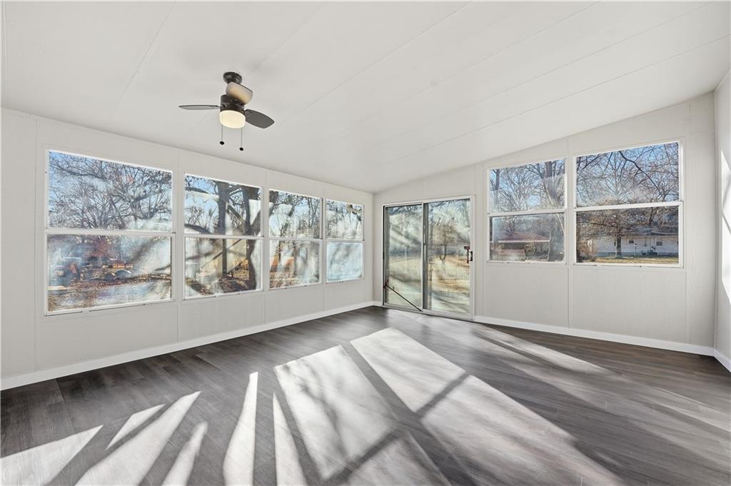 Welcome to this fully renovated split-level home, completely transformed from top to bottom and tucked into a quiet, established neighborhood with mature trees. The main level is bright and open with vaulted ceilings, exposed wood beams, and a comfortable living space that flows into the dining area and updated kitchen featuring ALL brand-new stainless steel appliances, white cabinetry, and modern finishes. Just off the main living area, a large sunroom offers additional space to relax or entertain. Upstairs, you’ll find well-sized bedrooms, including a primary suite with its own bathroom, plus an updated hall bath. The laundry is conveniently located on this level, right next to the bedrooms, making everyday living easy. The finished lower level adds valuable flexibility with a second living space, a full bathroom, and a spacious non-conforming 4th bedroom with a walk-in closet. With private exterior access, this area works well for guests, a home office, or additional living space. Additional features include updated flooring throughout, modern fixtures, ample storage, a two-car garage, and a rear deck overlooking the yard. Located just minutes from North Kansas City Hospital and approximately 10 minutes from Downtown Kansas City, this home offers quick access to city amenities while still feeling removed from the busy city life. Move-in ready and thoughtfully renovated throughout, this home is truly unrecognizable from its original condition and offers a functional layout, great location, and flexibility to fit a variety of lifestyles.