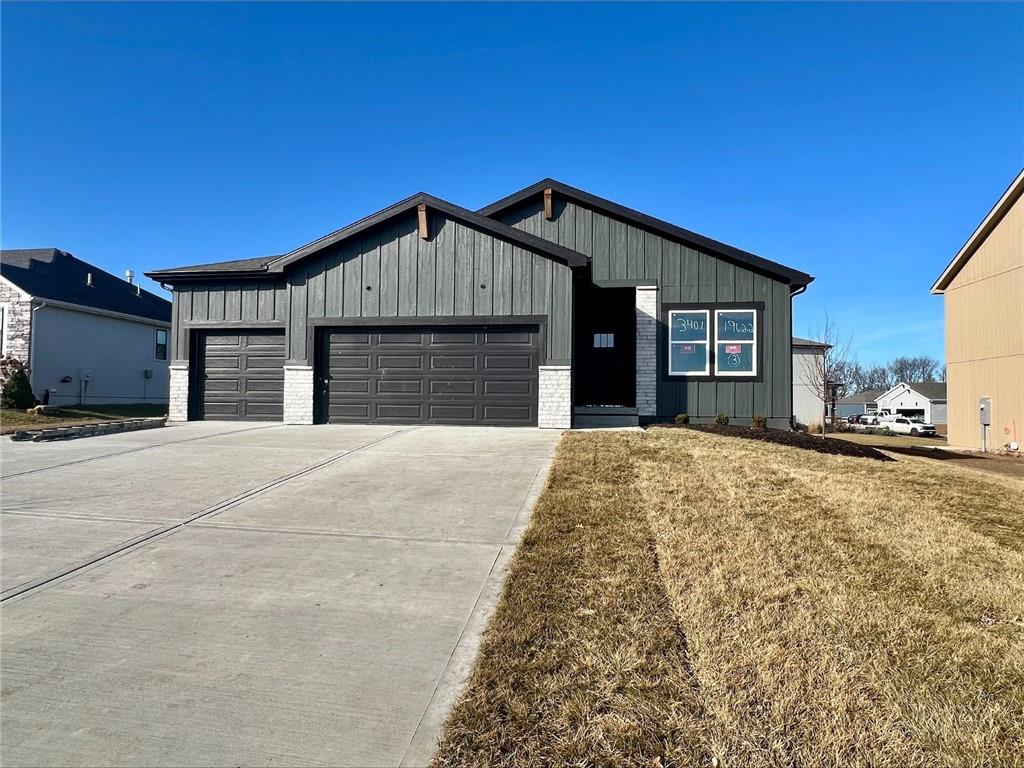 $404,950 in South Johnson County with a 3 Car Garage and a Basement! Wow! Featuring Top-of-the-Line Series 3 Finishes, a Spacious 3 Car Garage, Fireplace, an Upgraded Craftsman Front Door, Designer Ceramic Tile, Hardwood Floors, Quartz Countertops, Tiled Primary Shower (Not a Fiberglass Insert) Modern Appliances, Black Matte Fixtures and Hardware, a Black Silgranit Kitchen Sink, a Large Kitchen Island, Walk-In Pantry, and a Nice-Sized Primary Suite! Designed with modern style and everyday comfort in mind, this home will be ENERGY STAR CERTIFIED upon completion — offering superior efficiency and long-term savings. Step outside and enjoy access Just Steps Away to the Prairie Ridge Trail that flows through the community, along with Nearby Community Greenspace, Park-Like Play Area, and Picnic/Gathering Area — perfect for relaxing, playing, and connecting with neighbors or inviting family and friends. Visit the Prairie Ridge Community today — and you’ll know the moment you arrive that this is the place you’ll want to call HOME!