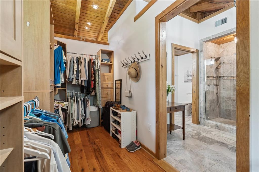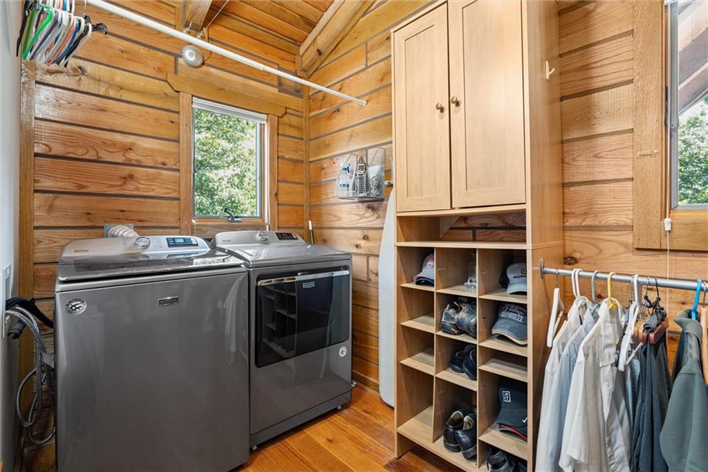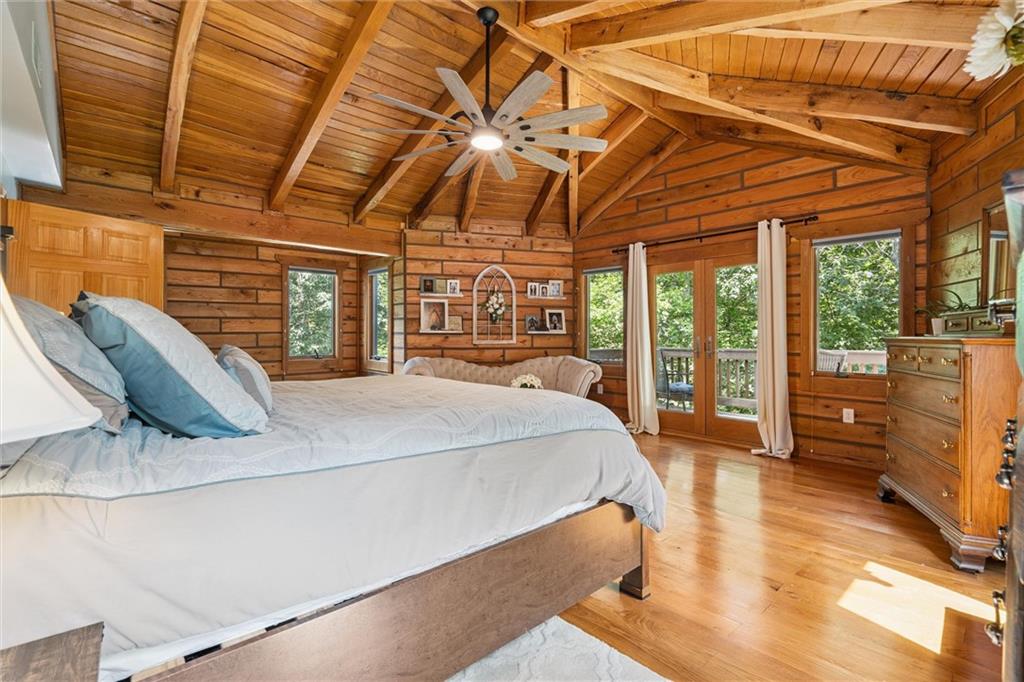 Stunning Log Home on 5 Wooded Acres! So much privacy and situated on all paved roads just 20 Minutes from Lee’s Summit! This custom log home offers over 3,500 sq ft of finished living space across three levels. It is nestled on 5 acres in an established rural neighborhood with paved roads as well. Upgrades: Whole House Generac and gas fireplace powered by propane and immediate backup power! Upgraded custom lighting inside and out and sellers finished the walkout basement which includes a second laundry and new hot water heater. Step inside to soaring vaulted ceilings, expansive windows that flood the home with natural light and rich hardwood floors throughout. Main level features a dramatic two-story Great Room with cozy gas fireplace, spacious dining area, and a chef’s dream kitchen complete with custom cabinets and a finished walk-in pantry. A main-level bedroom includes a built-in dresser/vanity with full bath across the hall. Upstairs, the open loft is a great hangout/office and overlooks the great room with lots of natural light. The upper loft also leads to the luxurious primary suite, offering custom built-ins, a private deck, a walk-in closet with laundry hookups, and a spa-inspired ensuite bath. An additional upstairs bedroom with a separate deck completes the upper level. The finished walk-out lower level adds over 600 sq ft of versatile living space, including a family room with direct patio access, a coffee/wet bar, a fourth bedroom, an office, full bath, second laundry area, ample storage, and 1 car garage. Enjoy the outdoors and privacy from multiple decks and porches surrounding the home! The second driveway offers space for additional parking or an out-building. Whether you're entertaining, relaxing, or working from home, this property offers the ideal blend of rustic charm, modern convenience, and peaceful seclusion.