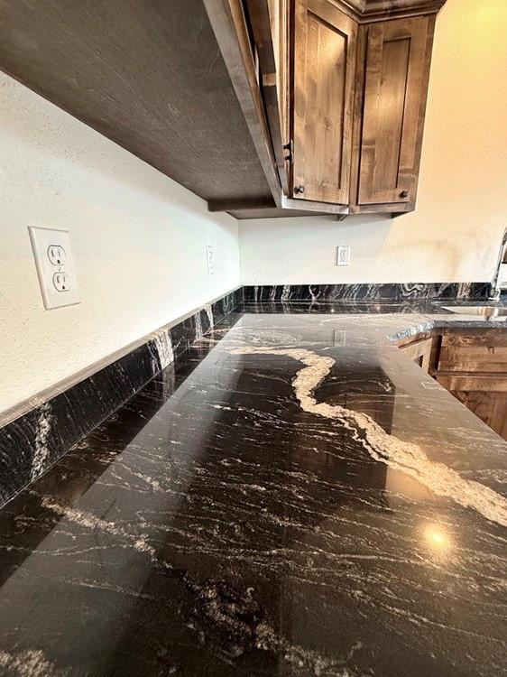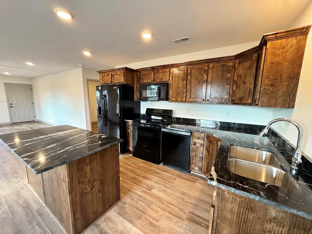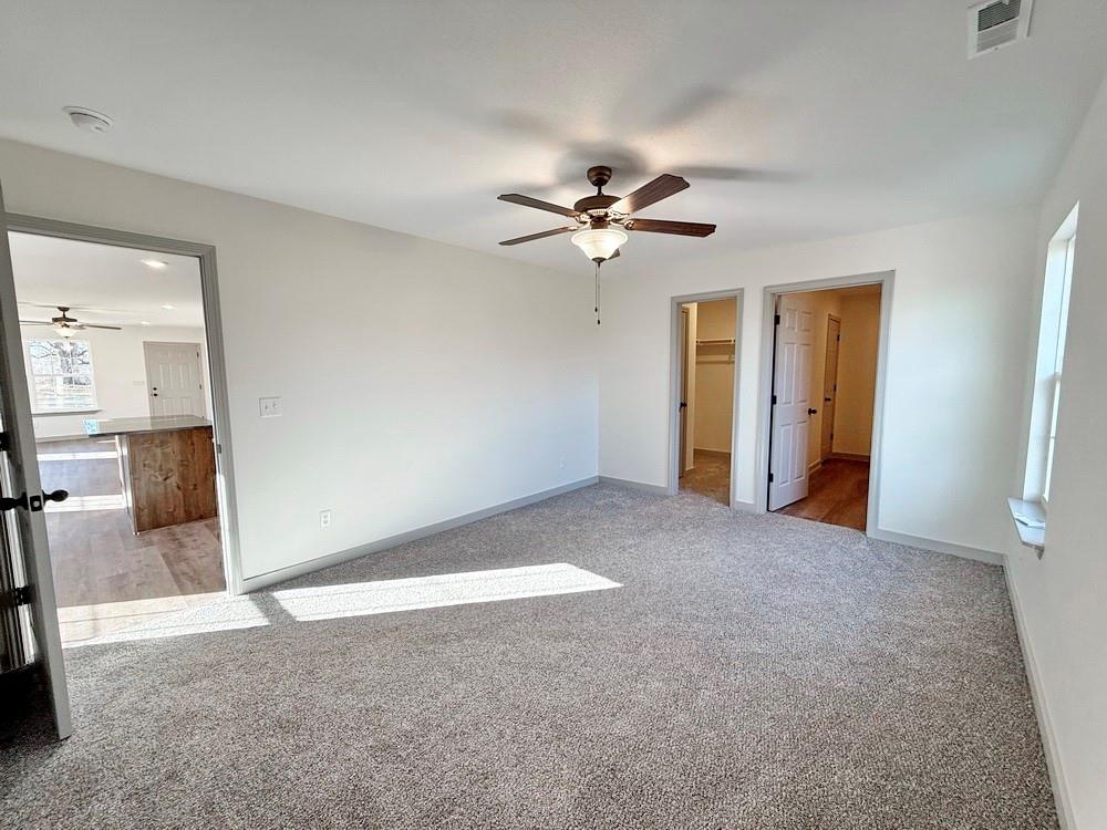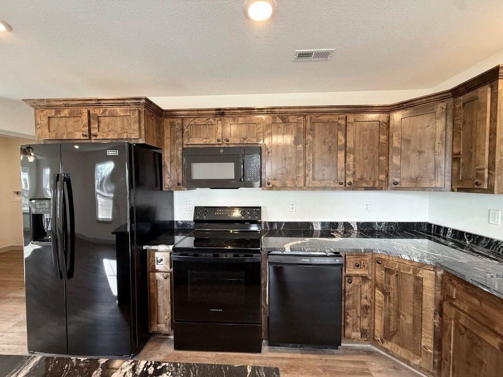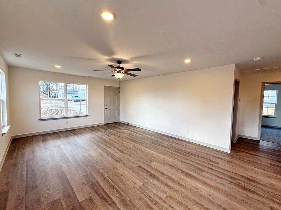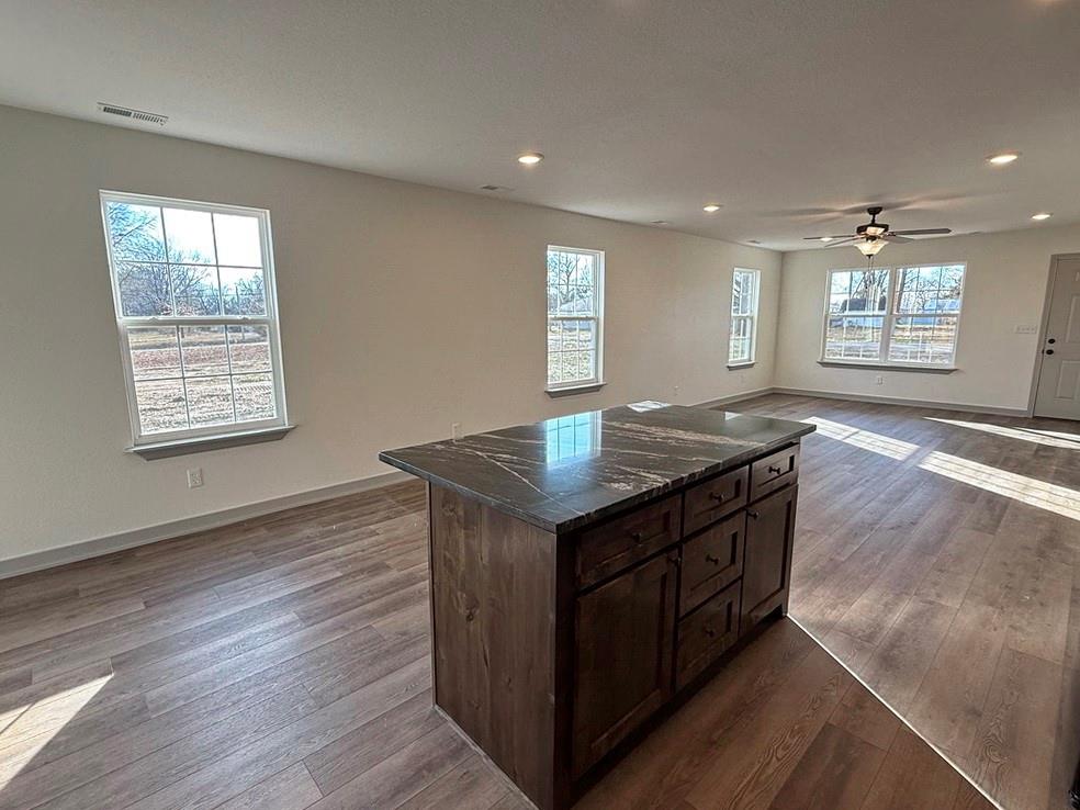 New-Construction Ranch Home in El Dorado Springs: This new-built home, located in a beautiful neighborhood on the south side of El Dorado Springs, will be ready for its first owner in January 2026. The 1,401 sq ft home sits on a level .26-acre lot surrounded by a neighborhood of newer homes. The maintenance free exterior showcases an attractive combination of siding and stone and accented by a front patio and a back BBQ/coffee patio. The main living space is a combination of the living room, dining room, and kitchen that is perfect for entertaining and allows for tons of natural lighting with 2 west-facing windows and 3 south-facing windows. The custom cabinets, with soft-close doors and drawers, granite counter tops, kitchen island, LED lighting, and new black appliances make this a top-tier and attractive kitchen. There are 3 bedrooms and 2 bathrooms with one bathroom ensuite to the master. A 2-car garage is attached. This home has no steps, a 1-year builder’s warranty, low maintenance, and a perfect location for walking, biking, and quick errands to town. Call today and schedule a private showing as the final touches are being finished on 1803 S Elm St in El Dorado Springs.