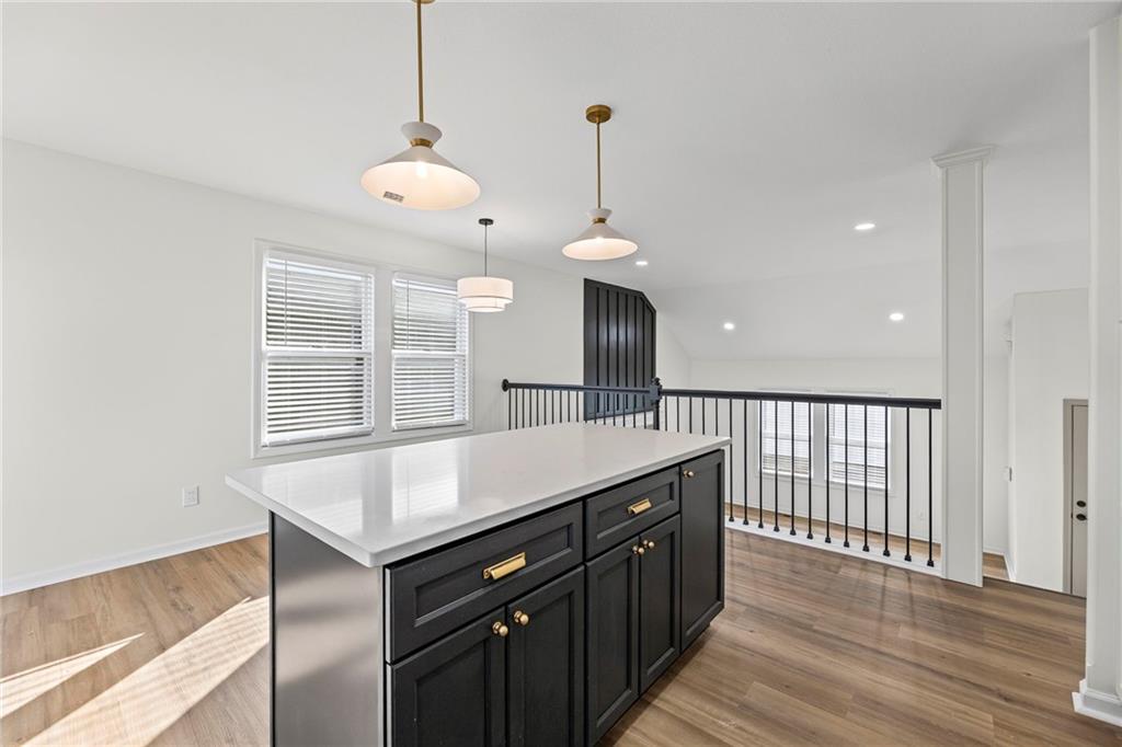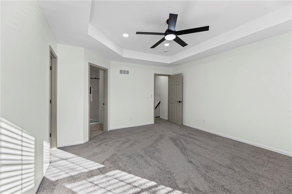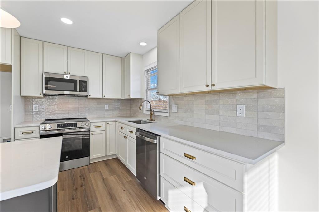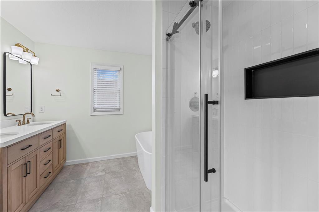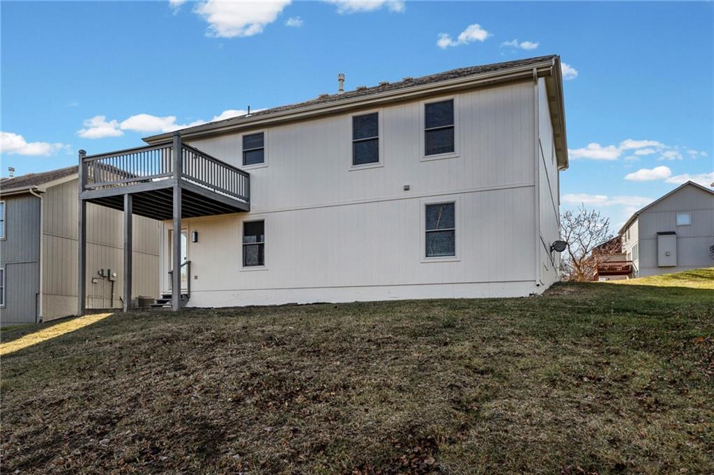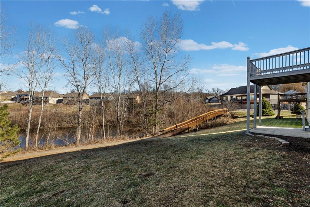 Beautifully remodeled California Split level home backing to neighborhood trail and pond! ALL NEW: Roof, Kitchen, Baths and MORE! Fresh interior and exterior paint pair perfectly with new floors. Inviting, light and bright Great Room features cozy fireplace for these chilly months. Please the chef in this kitchen with new cabinets, quartz countertops, center eat-in island, pantry and new stainless steel appliances! Adjacent dining area accesses the deck to easily move outdoors! Also on this level find two bedrooms, second full bath and convenient laundry! Head up to the Primary Retreat showcasing tray vault ceiling, walk-in closet and a private en-suite including double vanity, spa bath and separate shower! Finished, walk-out lower level has a family room, fourth bedroom and third full bath. Unfinished basement for additional storage needs. All of this in a fantastic location just minutes to all the activities at the Legends and easy highway access to enjoy everything the Metro has to offer. WELCOME HOME!
