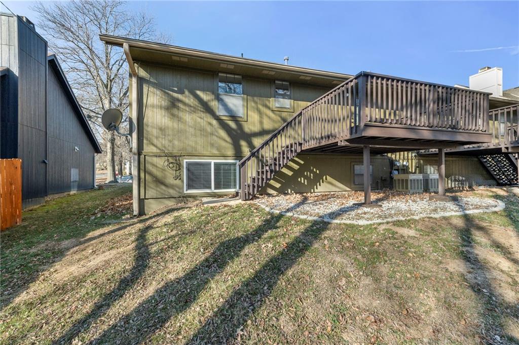 Amazing opportunity for one level living or an investment property! This home is located just minutes from the shops and restaurants at the Legends! Completely updated and move-in ready! This home features all new interior paint, updated hardware and lighting, granite countertops, and new appliances. Bathrooms have been refreshed with higher sinks, a taller toilet, and brand-new refinished tubs. New carpet and new luxury vinyl plank flooring run throughout the home. The basement offers a non-conforming 4th bedroom, a REC room, and a full bathroom with tile flooring and a walk-in closet, perfect for added living space. Additional highlights include a cozy wood-burning fireplace, a huge storage area and washer and dryer hookups in the unfinished space. Interior cabinets have been newly painted. Major exterior upgrades include a new roof and gutters installed in 2025. A rare find that's move in ready!