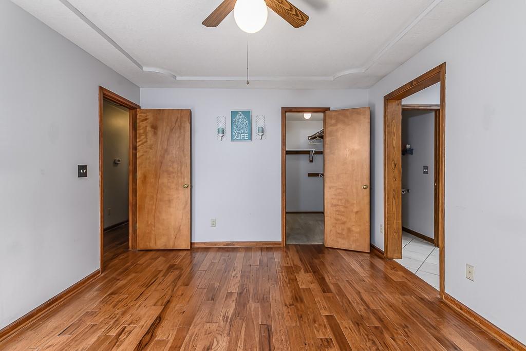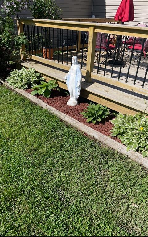 Look no further! Set back on a peaceful 2.4-acre lot, this 3-bedroom, 2.5-bath ranch home offers privacy, space, and versatility. The vinyl-sided home features a full length front porch, 2-car garage, long asphalt drive, and paved road access. Much of the main level has hardwood flooring. The kitchen includes stainless Whirlpool appliances, kitchen island and granite counters. As a bonus, the refrigerator, washer and dryer stay with the property! The laundry room is huge and has several built-in upper cabinets. Closets are cedar lined! Master has a walk in closet and master bath has a jet tub, seperate shower and toilet closet. The finished basement adds excellent living space with a huge family room, a cedar closet, half bath and large exercise room with mirrored closets and foam flooring. Enjoy outdoor living with an above-ground pool and composite deck (rafts, pump and pool cleaner included), fenced yard, garden area, and fruit trees—2 peach, 2 plum, and 2 apple, and gorgous flowers. A 36x16 outbuilding offers electricity on a separate meter, propane heat, and window A/C—ideal for a workshop or hobby space. There is also a shed for your garden tools. Taxes and Sq Ft are estimated. This property won't last long!