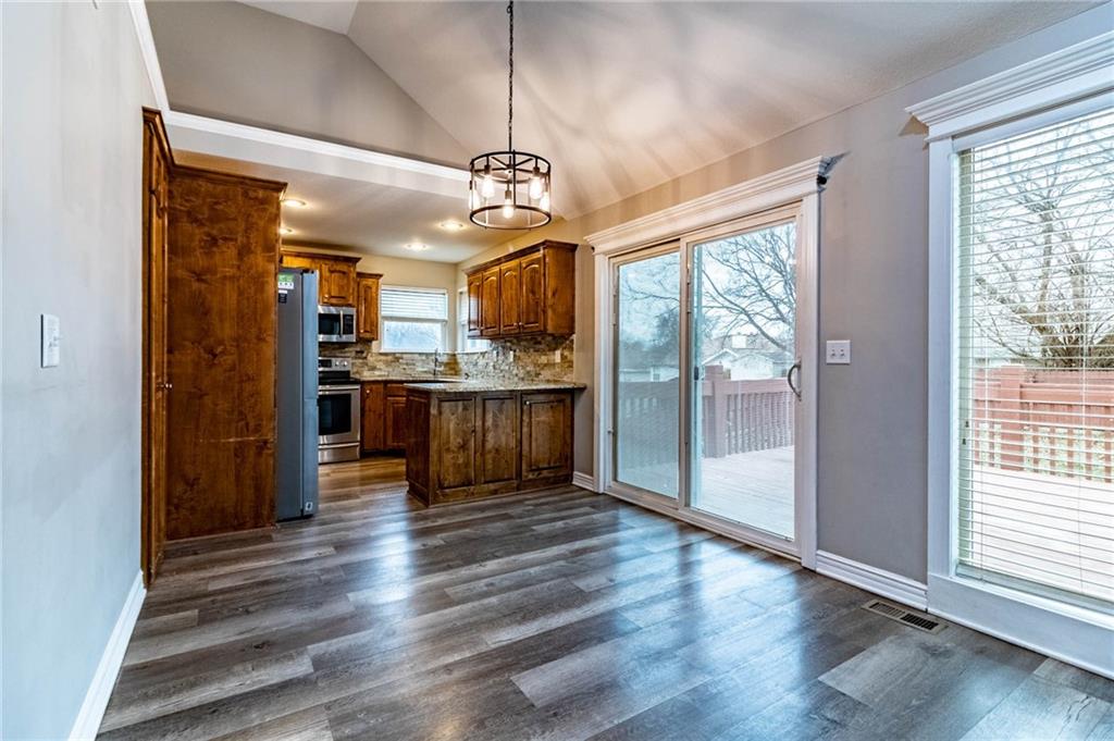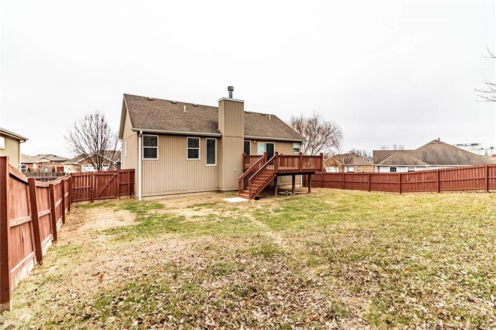 Beautiful 4 Bed/3 Bath home boasts high ceilings and an open floorplan. Large spacious living room offers an electric fireplace and lots of natural light. The kitchen features custom cabinets, stone backsplash, granite countertops, stainless steel appliances and a pantry. You can walk right out to the deck from the dining room sliding glass doors for easy access to BBQ, entertain, or just relax. The spacious primary bedroom and bath has high vaulted ceilings, separate jetted tub and shower, private toilet room, double vanities, and a walk-in closet. There are 2 more bedrooms, laundry, and a guest bathroom on the main level. The lower level offers a huge bedroom & full bath room. That room could be used as a family room. The huge backyard has a privacy fence and gates to access the front yard. There is an oversized 2 car garage attached. This home is located close to shopping, restaurants, and a short commute to Whiteman Air Force Base.