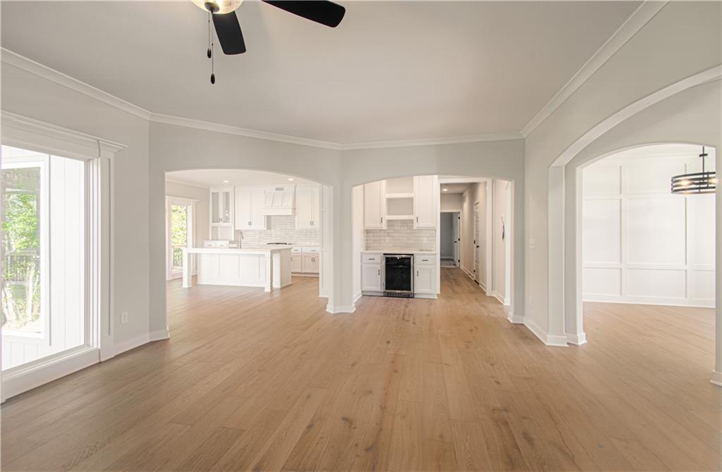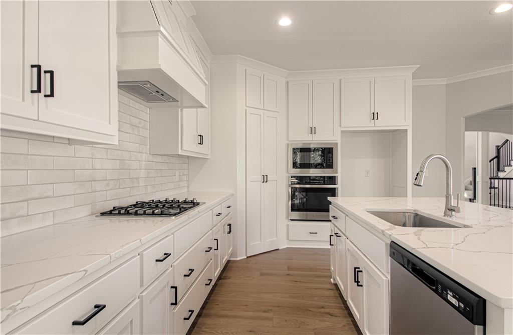 The move-in ready "DAISY" is a Gorgeous 2-Story home with 2900 square feet backing to woods. Offering 5 Bedrooms, with the 5th Bedroom on the Main Level, and 4 Full Baths. Upgraded finishes and attention to detail this lovely home offers Rounded Arches, Custom Built Cabinets, HUGE Kitchen Island, Bonus Bar with beverage fridge, Floor to Ceiling Windows, Gourmet Kitchen, Gas Cooktop, Mudroom at Garage Entry and an Open Layout which makes it great for entertaining. The Second Level is just as impressive and features a Private and Expansive Primary Suite and Walk-in Closet that has access to the Laundry Room. The Primary Bath is luxurious with an oversized Tub and Walk-in Shower with tile walls. There are 3 more bedrooms and 2 more baths on this level. Beautiful Staircase overlooks the Front Entry. Huge walk-out basement that could be finished to fit the buyers needs.