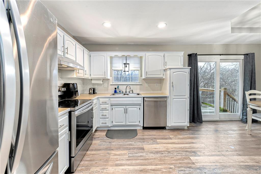 Great home and great location! On a cul-de-sac road and conveniently located near schools, shopping/restaurants, and highways, this 3 bedroom, 2.5 bath split level home is ready for you to make your own! West-facing location brings lots of natural light to the main level. The interior has newer paint and updated LVP floors. Upstairs you will find the living, dining, and kitchen as well as 3 bedrooms and 2 full bathrooms. Downstairs has a second living space, laundry, a 3rd half bath and walkout to the back yard. Enjoy the deck for outdoor dining or coffee. Gain some sweat equity in this one - the exterior needs some TLC, some updating could be added with some painting but there is plenty of space and bathrooms to do so and make this your very own home with your personal finishing touches!