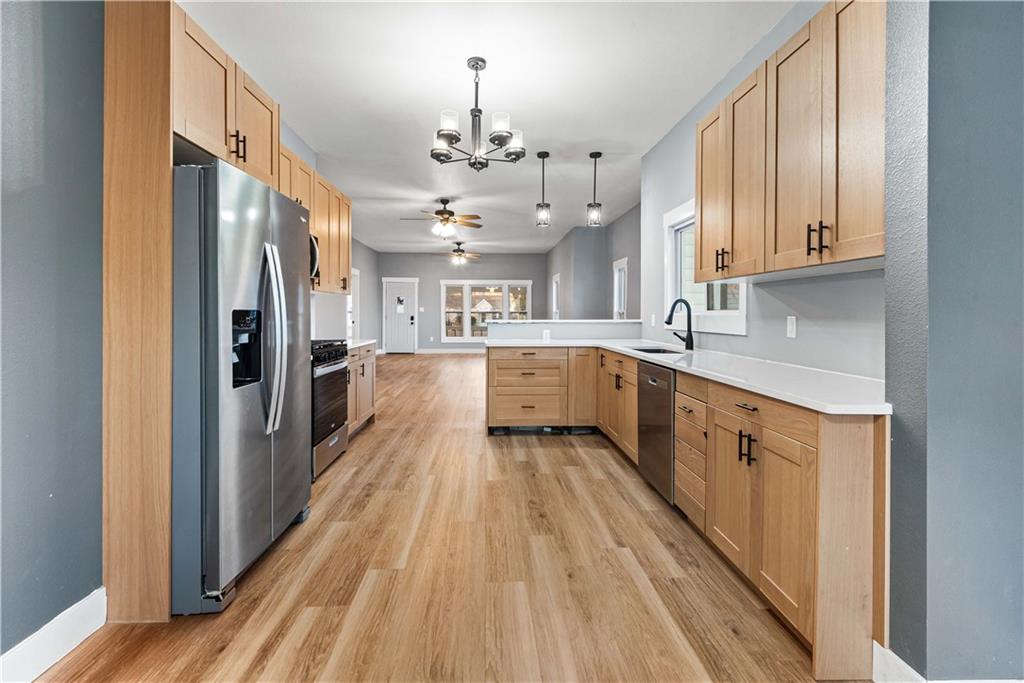 Stunning, fully remodeled home in the heart of Manhattan—the Little Apple! This massive 6-bedroom, 3 full-bath residence has been completely transformed from head to toe and is truly move-in ready. The interior showcases custom cabinetry, all-new appliances, and thoughtfully designed custom lighting and fixtures throughout. A show-stopping custom-stained staircase anchors the home and adds a dramatic architectural touch you have to see to believe. With generous living space, upscale finishes, and a prime central location, this turnkey property is perfect for anyone looking to be in the heart of it all within walking distance to Kansas State University! Don’t miss this exceptional opportunity in Manhattan, Kansas!