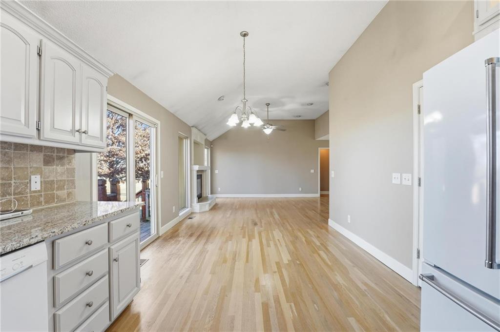 This inviting 3 bedroom, 2.1 bath split-level home in Cedar Wood offers a bright, open layout with hardwood floors and tall ceilings throughout the main living areas. The living room features a cozy fireplace and flows seamlessly into the kitchen, which is finished with hardwood floors, ample cabinetry, and easy access to the deck, making it ideal for everyday living and entertaining. The primary bedroom includes a walk-in closet and an en-suite bath with a walk-in shower and jetted tub, while two additional bedrooms share a full hall bath. The finished basement expands the living space with a large family room, half bath, and an impressive wet bar with kitchenette, offering flexibility for a recreation area, private suite, or small apartment setup with separate access. A two-car garage adds convenience, and the backyard deck provides a comfortable outdoor retreat. This well-maintained home offers versatile spaces and a functional floor plan ready for its next owner.