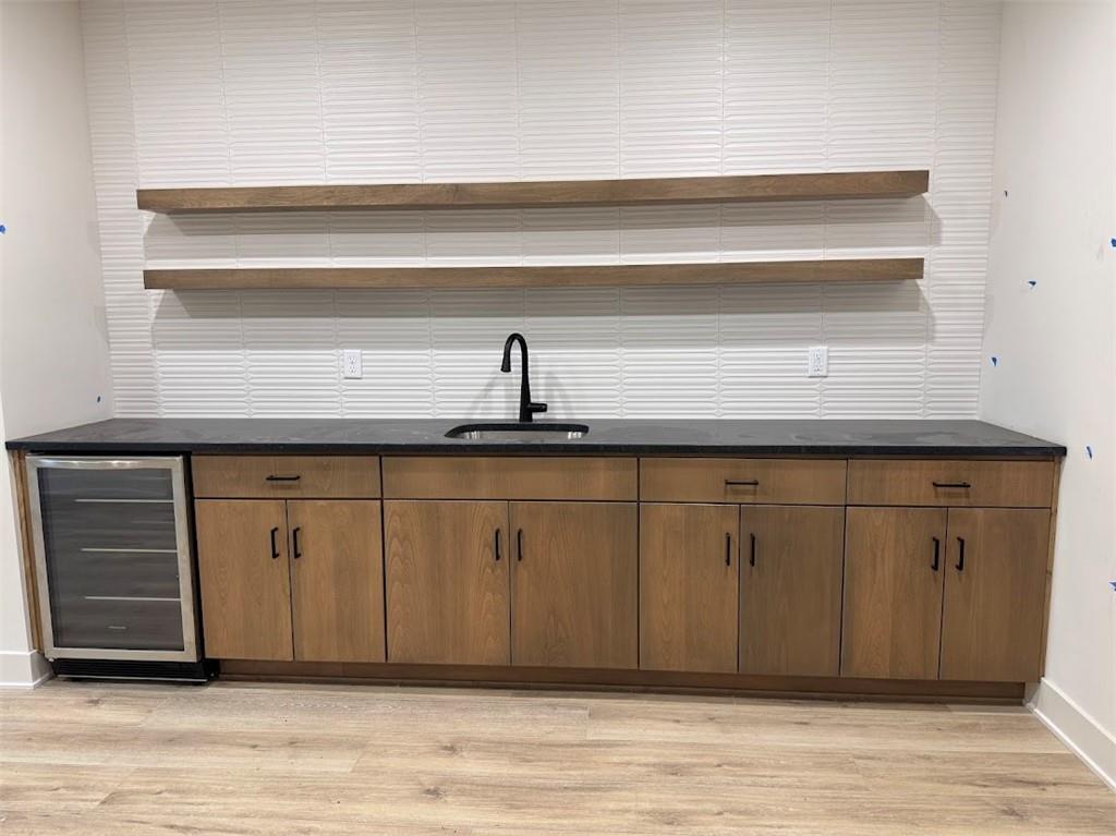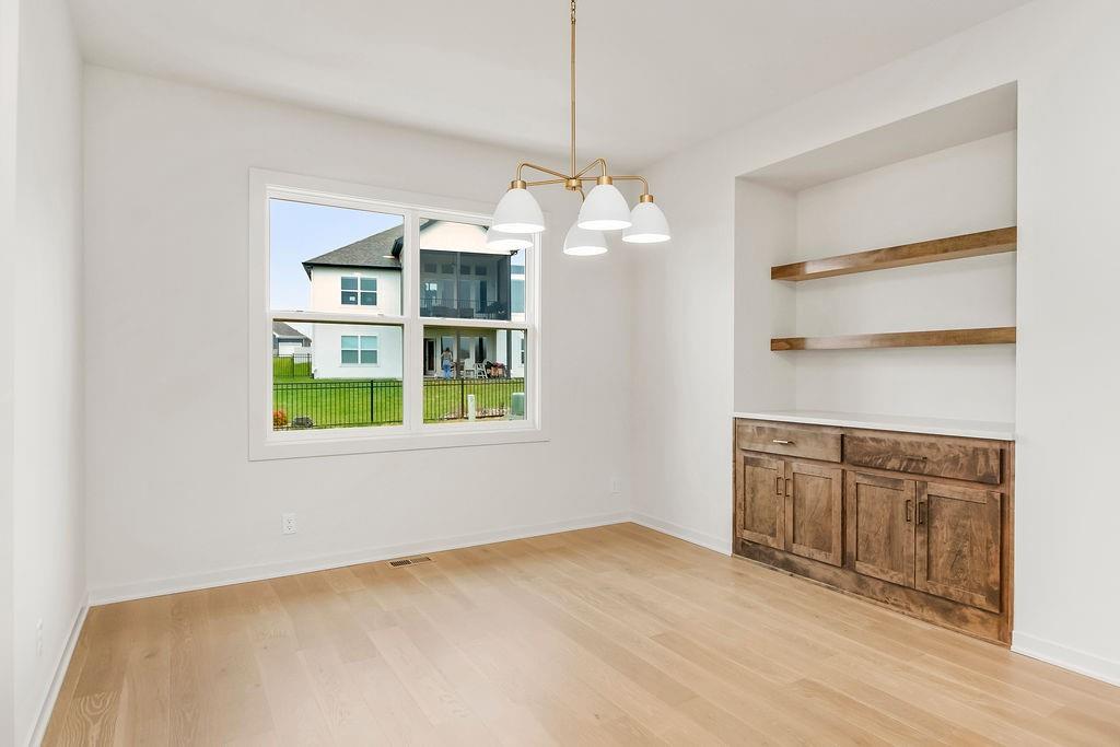 The Woodland by Elevate Design + Build is a reverse 1.5-story 5 bedroom home offering a modern exterior, a smart main-level layout, and spacious lower-level living on a large almost 13,000 sq.ft. lot. 8' tall interior doors on the main level, pocket office off kitchen, sleek electric fireplace. The main floor features the primary suite plus a second bedroom that can serve as an office or flex space, providing versatility for today’s lifestyle needs. The great room connects seamlessly to the kitchen and dining area, all highlighted by natural light throughout. A covered deck sits just off the dining area, ideal for outdoor dining or quiet relaxation. The primary suite offers a peaceful retreat with a spacious layout and access to a beautifully appointed bathroom. The lower level extends the living area with a large family room with wet bar plus three additional bedrooms, offering privacy for guests or added functional space. Located in Stonebridge Park, residents enjoy access to four zero-entry pools, two clubhouses with fitness equipment, sport courts, playgrounds, and walking trails. Nearby amenities include Heritage Park (~0.3 mi) with lake access, dog park, athletic fields, disc golf course, and an 18-hole golf course. Convenient to Prairie Creek Elementary (~0.6 mi), Woodland Spring Middle (~1.0 mi), and Spring Hill High (~5.5 mi). Everyday essentials are close by with local coffee shops (~1–1.2 mi), Natural Grocers (~4.2 mi), and Price Chopper (~1.5 mi). Early spring completion! Taxes, square footage, and room dimensions are estimated – Buyer or Buyer Agent to verify.