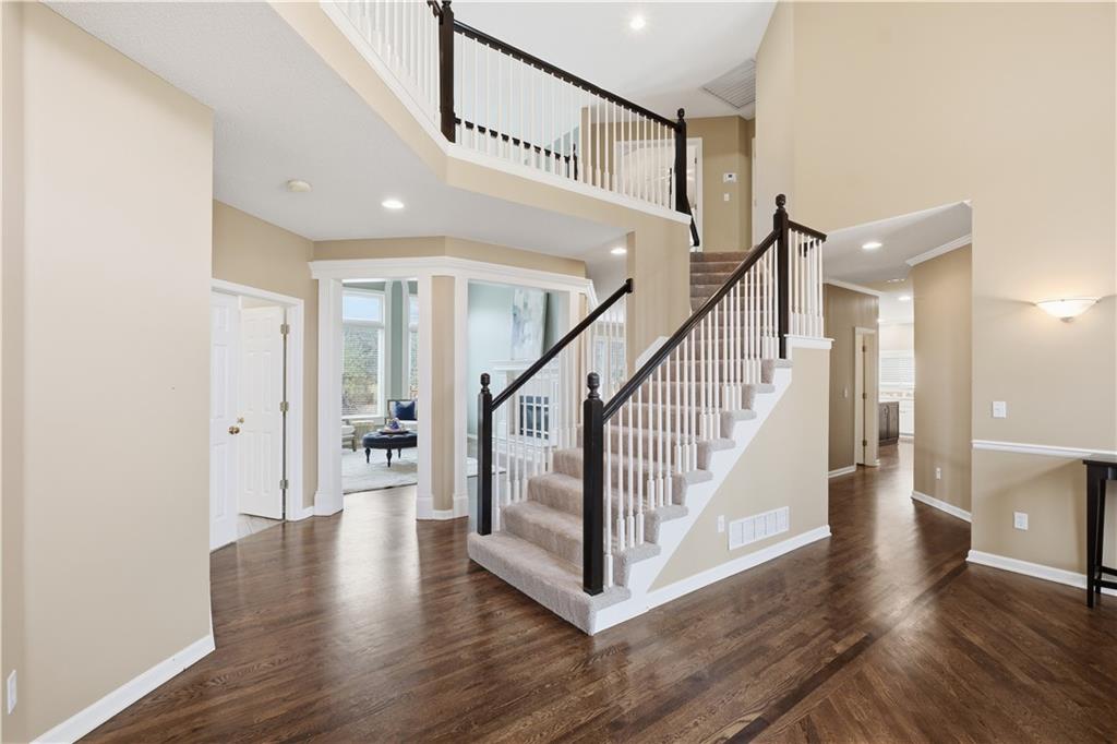 Tucked away at the end of a quiet cul-de-sac and backing to greenspace in Grayson Mills of Amesbury Lake, this is the kind of home that instantly feels welcoming—and keeps surprising you in the best ways. Thoughtfully designed and truly one of a kind, it offers space, flexibility, and comfort for real life, whatever that looks like for you. One of the standout features? Two primary suites—one on the main level and another upstairs—makes this home ideal for multigenerational living, long-term guests, or even a private home office. The main-level primary suite includes its own private laundry, while a second, spacious laundry room upstairs adds everyday convenience right where the bedrooms are. With 5 bedrooms and 4 1/2 bathrooms, there’s room for everyone to spread out without sacrificing connection. The main level flows beautifully, with a spacious living room, formal dining room, and an eat-in kitchen that opens to a cozy hearth room—perfect for everything from everyday mornings to hosting holidays. Step out onto the deck and take in the large, fenced backyard, ideal for entertaining friends, letting pets play, or enjoying peaceful summer evenings outdoors. Downstairs, the finished daylight lower level feels like a home of its own, featuring a huge great room, bar area, additional nonconforming bedroom, full bathroom, and plenty of storage. Movie nights, game days, home gym, playroom—you name it, this space can handle it. Blue Valley School District, plus neighborhood walking trails and a community pool, make it easy to enjoy an active, connected lifestyle. Spacious, versatile, and set in one of Overland Park’s many desirable neighborhoods—this is more than a house: it’s a place to settle in, grow, and make memories.