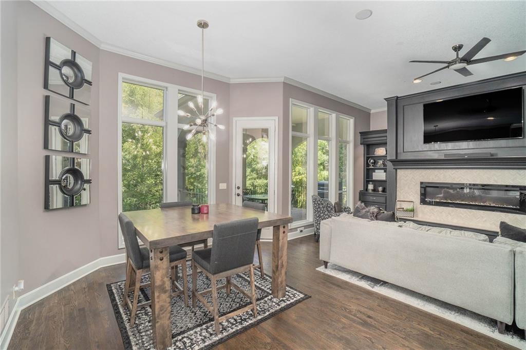 This magnificent Reverse 1.5 Story in Tremont Manor sits on a desirable corner lot backing to lush, mature trees, offering both privacy and curb appeal. Thoughtfully updated throughout, the home features soaring ceilings, beautiful built-ins, and an open, airy floor plan designed for comfortable living and effortless entertaining. The kitchen showcases hardwood floors, a generous island, and abundant cabinetry, flowing seamlessly into the main living spaces. The spacious primary suite is a true retreat with dual vanities, custom built-ins, a walk-in shower, and a separate whirlpool tub. A well-appointed main-level office is filled with natural light, making it ideal for working from home. The finished lower level is perfect for entertaining, complete with a full bar, game area, and expansive family room. The impressive 19x22 suspended garage provides exceptional storage and features a convenient double-door exterior entrance. Step outside to enjoy the peaceful backyard from the covered deck or patio. Recent updates include a newer roof, updated interior and exterior paint, refreshed landscaping, updated light fixtures, flooring, and more. A truly exceptional home—this one is a must-see!