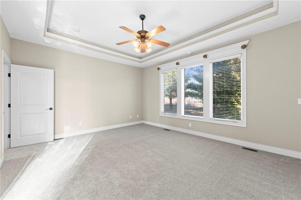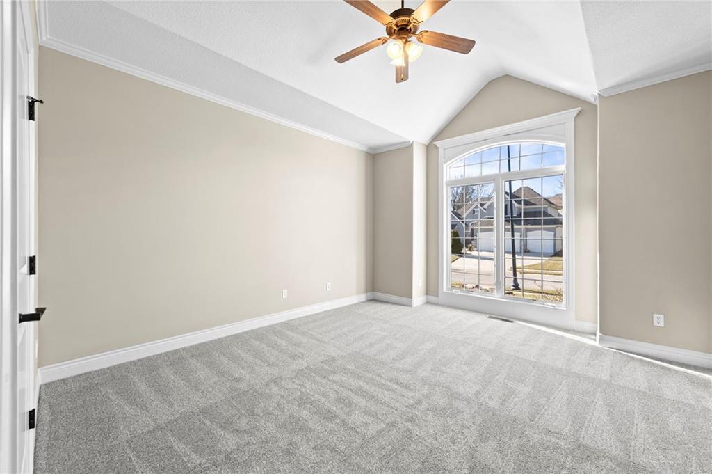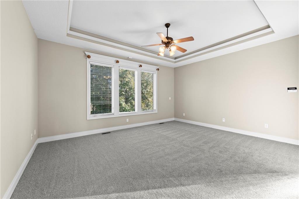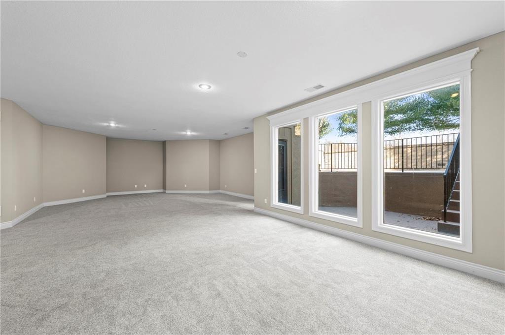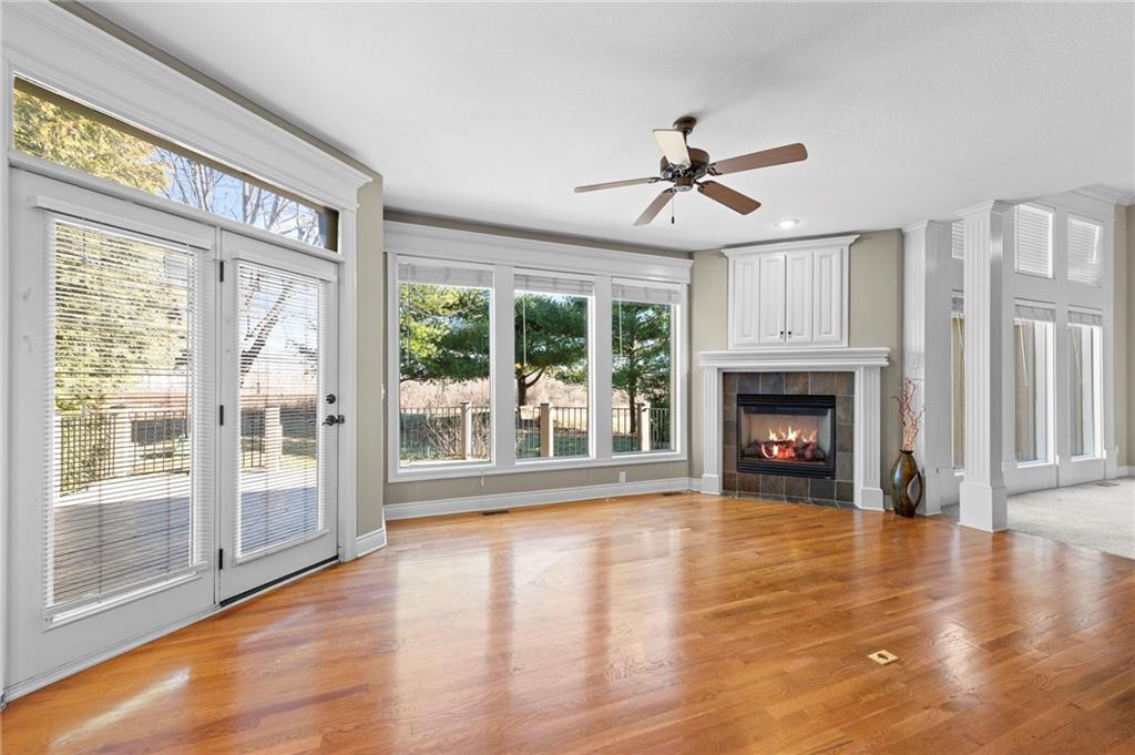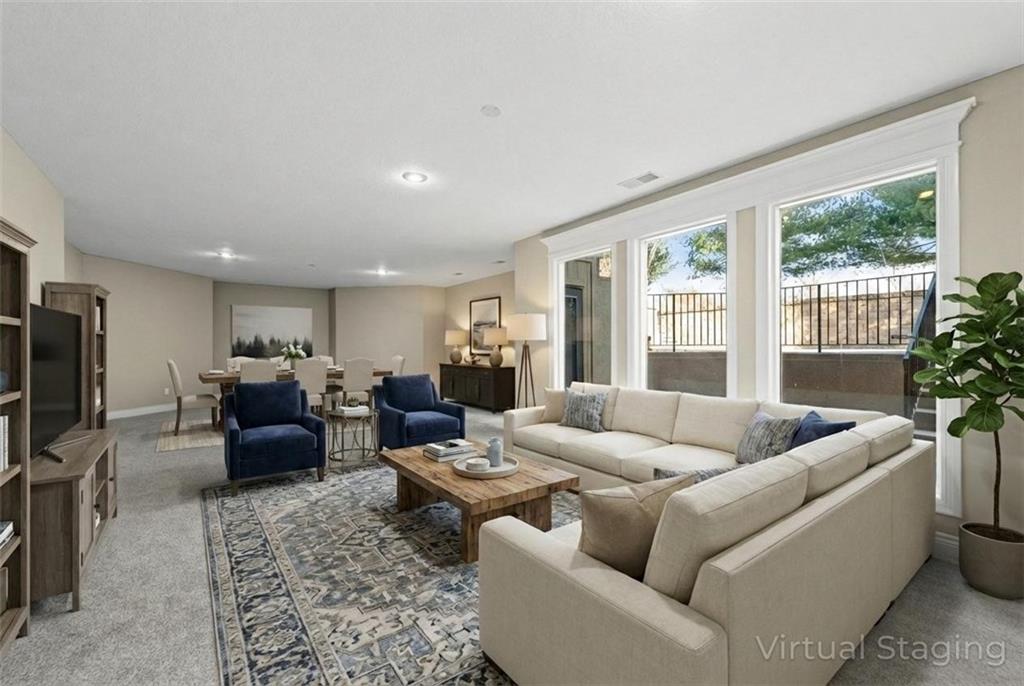 Custom Reverse 1.5 Story home situated perfectly on a private, treed, TRANQUIL lot! Timeless and elegant, this uniquely designed open and spacious floor plan is one-of-a-kind! Soaring ceilings and treed views! Optional 2nd Bedroom, or office on main floor and formal dining off of the entry. Great room that is open to a cozy hearth room w/ gas fireplace, Wetbar, casual dining, hardwood floors, and extended kitchen island with Electric Cooktop, Hardwood floors and HUGE walk-in Pantry! Your own personal Grill Deck from hallway close to kitchen and laundry. Open Deck off of breakfast and hearth room, walk out to your outdoor private OASIS! Stunning, stamped concrete veranda to custom courtyard, waterfall feature, fire pit and mature trees! Perfect for those shaded summer evenings! Spacious Primary Suite and Bath boasting Ceramic Tile Floors, double vanity, whirlpool tub, walk-in shower, and fabulous walk-in closet! Walkout/Walk-up LL with stairs to the concrete Veranda. Open Recreation Room, 2nd Bedroom suite, 3rd full bath, 4th Bedroom and tons of storage! All new carpet throughout! Oversized 3-car garage w/ tall ceilings! Enjoy the perks of living in Tiffany Greens! Golf cart ride to the Community Center & Pool! Set up a round at Tiffany Greens or become a member! Airport is less than 7 minutes away & access to I-29/152/Barry Road/Zona Rosa w/ shopping and restaurants! A true gem awaits! LOVE WHERE YOU LIVE!