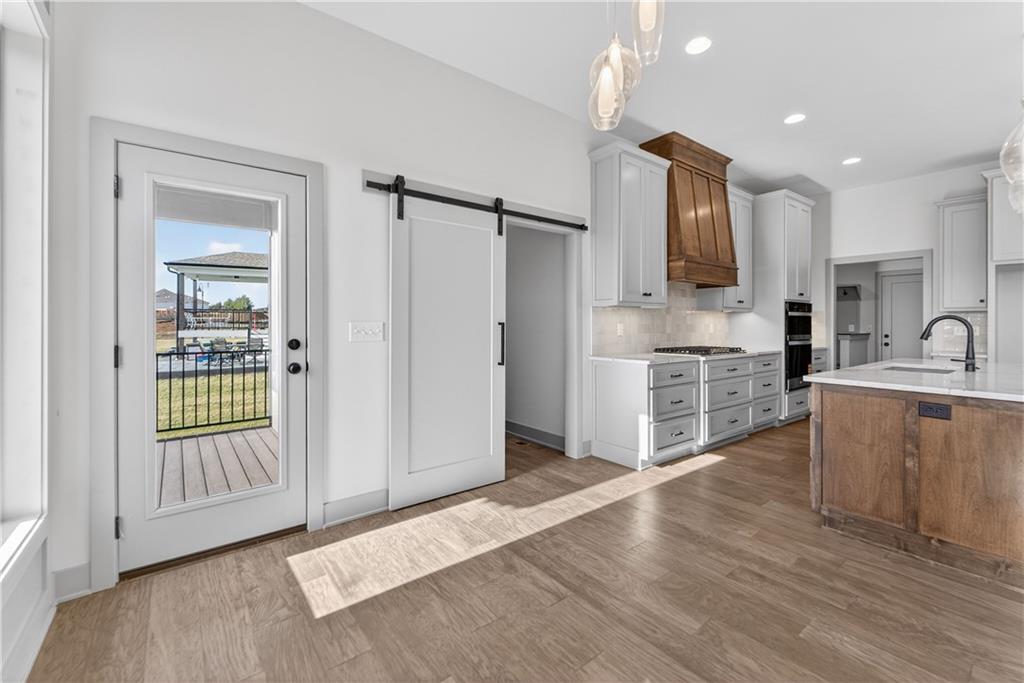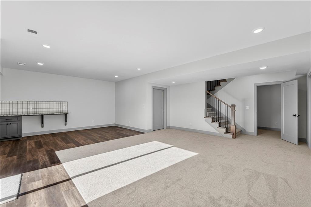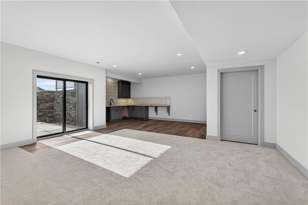 Situated on a premium, private lot backing to serene green space, trails, and a meandering creek, this Reverse 1.5-Story offers the perfect balance of modern luxury and everyday comfort. The thoughtfully designed 4-bedroom, 3-bath layout accommodates both peaceful mornings and effortless entertaining. The main level is anchored by a kitchen featuring sleek quartz countertops, custom cabinetry, a gas cooktop with striking statement hood, and a double-oven configuration with convection microwave. A pocket office is conveniently positioned nearby, while a well-planned mud zone and large pantry seamlessly connects the three-car garage for easy organization and daily functionality. Sunlight fills the great room as it flows into the primary suite, with the laundry thoughtfully located just steps away. A secondary main-level bedroom is privately tucked away—not immediately off the front entry—offering flexibility for guests or a more private home office. The walkout lower level is bright and inviting, designed for gatherings with a spacious recreation room, wet bar, and two generously sized bedrooms. Outdoors, enjoy the tranquility of a peaceful dead-end street with minimal neighbors, an expansive backyard, and an in-ground sprinkler system. Ideally located just minutes from shopping, dining, and entertainment along Adam’s Dairy Parkway, with quick access to I-70 for effortless commuting. Exceptional design, privacy, and convenience come together here—schedule your private tour and experience it for yourself.