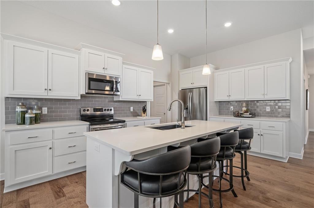 Better than new and move-in ready! This 5-year-old 1.5-story home offers 4 bedrooms, 2.5 baths, and a spacious 3-car garage in a highly desirable setting backing to green space—truly stunning when the trees are in bloom. The open and airy layout is complemented by neutral décor and custom blinds throughout, making it easy to personalize and enjoy from day one. The main level features a comfortable primary suite and inviting living spaces, while the upper level provides additional bedrooms and flexibility. A large unfinished basement offers endless potential, already equipped with an egress window for a future 5th bedroom and plumbing in place for an additional bathroom. Enjoy peaceful views, privacy, and access to top-rated Lee’s Summit Schools. This home combines thoughtful design, future expansion opportunities, and a beautiful natural backdrop—don’t miss it!