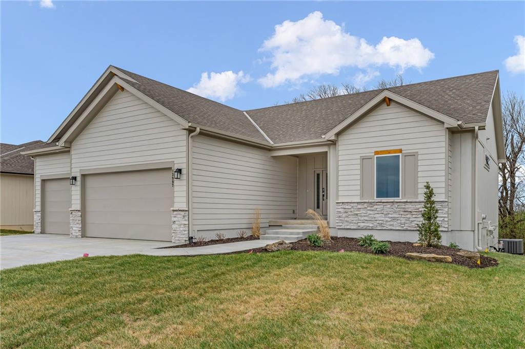 The Bridgeport III floorplan built by Drippé Homes. Open concept daylight basement with tons of natural light! Kitchen furnished with stainless appliances, gas cooktop, hood vent, microwave, wall oven, quartz countertops, large island with oversized sink and spacious walk in pantry. Three bedrooms on main with primary opposite other bedrooms. Ensuite features double vanity, tiled walk-in shower, private water closet and gigantic closet with pass through to laundry. Mudroom off garage with boot bench. Finished basement with two additional bedrooms and rec room complete with wet bar, ready for hosting the next big game. Cozy up to the fireplace in the living room or enjoy the sunrise from the covered composite deck. Home backs to tree-line providing ultimate privacy with sod and sprinkler system included. Unfinished basement storage and three car garage provide plenty of storage. Estimated completion March 2026.