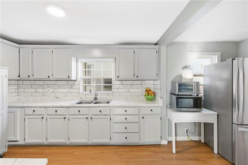 Welcome to this spacious and versatile 3-bedroom, 3 bath home located in KCK offering plenty of room to grow and flexible living options throughout. The main level features a large living room, open-concept dining area, and a generously sized kitchen with ample cabinetry and a built-in pantry for added storage. Also located on the main floor is a back bedroom and a convenient half bath with washer and dryer hookups for everyday convenience. Vinyl flooring runs throughout the home for easy maintenance. Upstairs, you’ll find two comfortably sized bedrooms and a full bathroom. The finished walkout basement offers additional living space with tile flooring, a full bath, small kitchen area, and a fourth non-conforming bedroom, making it ideal for entertaining, extended living, or a home office. Enjoy your mornings on the covered front porch, along with the added privacy and security of a fenced front yard. The backyard features a large concrete driveway providing off-street parking. Conveniently located in the Central neighborhood, this home offers easy highway access, walkability to Central Avenue grocery stores and restaurants, nearby amenities, and is just 10 minutes from Downtown KCMO. Several big-ticket items have already been done for you! A complete roof replacement and AC unit installed within the last 3 years, and water heater replaced 2 years ago. Schedule your showing today and explore all the possibilities this home has to offer!