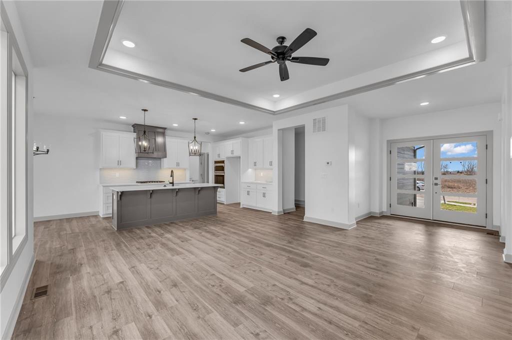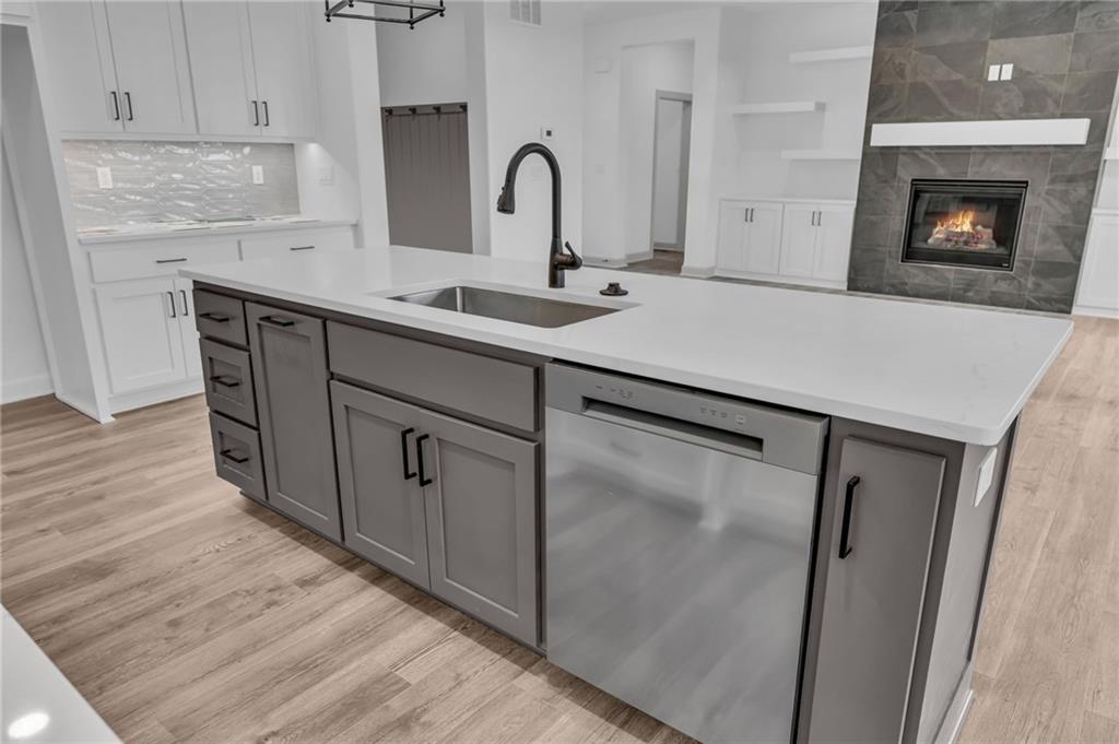 The Bridgeport II floorplan built by Drippé Homes. Modern finished open concept daylight basement with tons of natural light! Kitchen furnished with stainless appliances, gas cooktop, hood vent, microwave, wall oven, quartz countertops, large island with oversized sink and spacious walk in pantry. Two bedrooms on main with primary opposite other bedroom. Ensuite features double vanity, tiled walk-in shower, private water closet and gigantic closet with pass through to laundry. Mudroom off garage with boot bench. Finished basement with two additional bedrooms and rec room complete with wet bar, ready for hosting the next big game. Cozy up to the fireplace in the living room or enjoy the sunrise from the covered composite deck. Home backs to tree-line providing ultimate privacy with sod and sprinkler system included. Unfinished basement storage and three car garage provide plenty of storage. Almost ready for your personal touch - schedule a showing today!