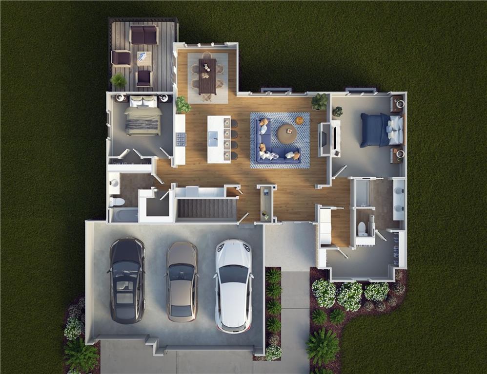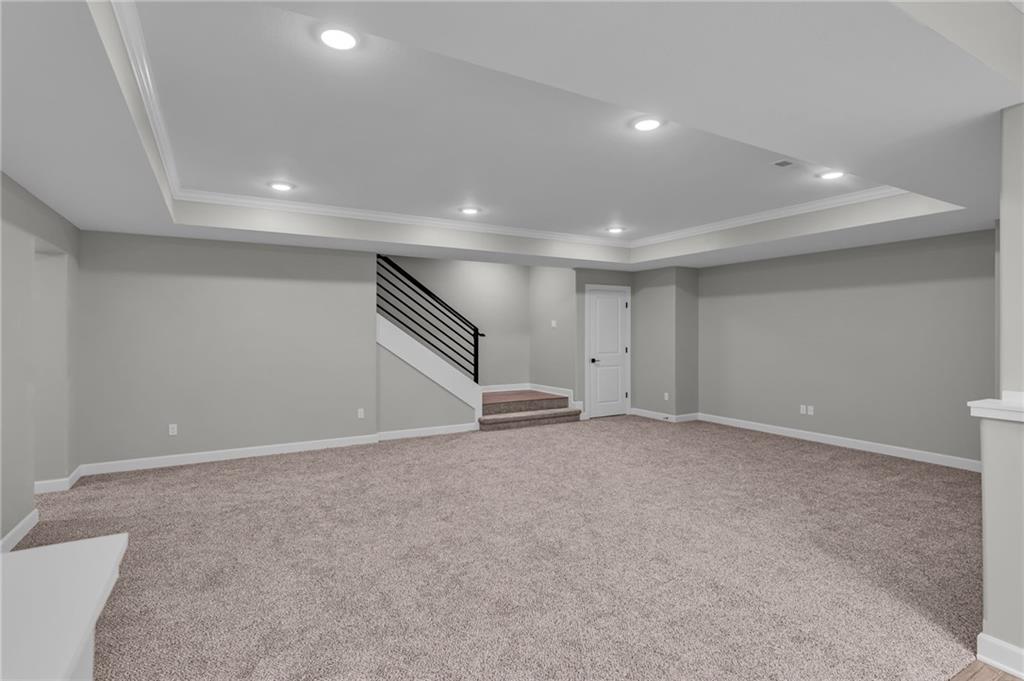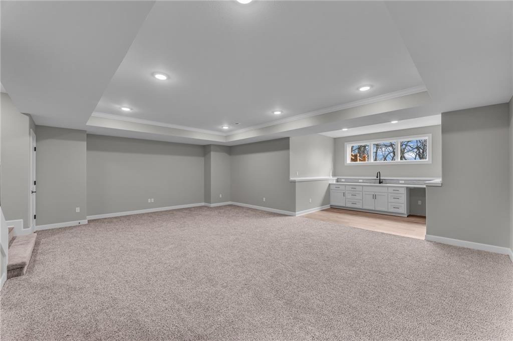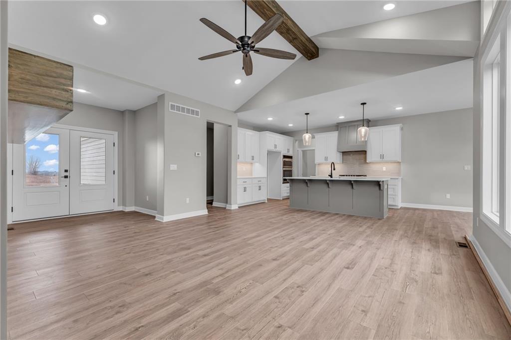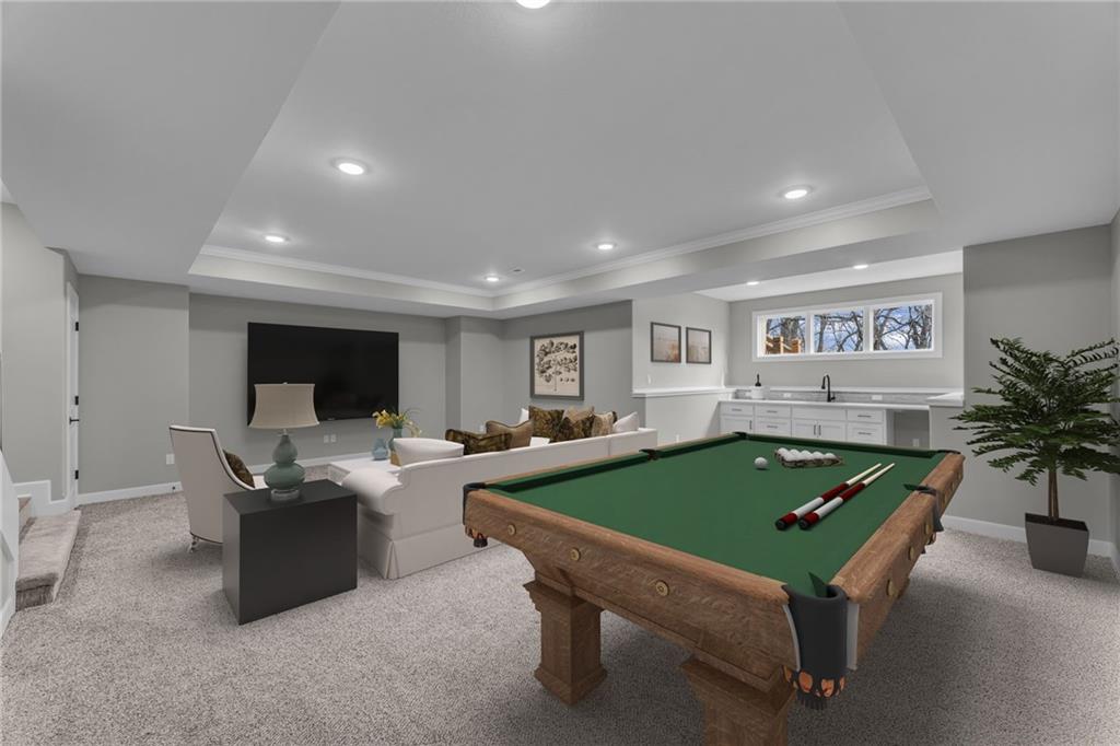 The Bridgeport II Estate floorplan built by Drippé Homes. Open concept daylight basement with tons of natural light! Kitchen furnished with stainless appliances, gas cooktop, hood vent, microwave, wall oven, quartz countertops, large island with oversized sink and spacious walk in pantry. Two bedrooms on main with primary opposite other bedroom. Ensuite features double vanity, tiled walk-in shower, private water closet and gigantic closet with pass through to laundry. Mudroom off garage with boot bench. Finished basement with two additional bedrooms and rec room complete with wet bar, ready for hosting the next big game. Cozy up to the fireplace in the living room or enjoy the sunrise from the covered composite deck. Home backs to tree-line providing ultimate privacy with sod and sprinkler system included. Unfinished basement storage, built-ins and three car garage provide plenty of storage. Almost ready for your personal touch - schedule a showing today!