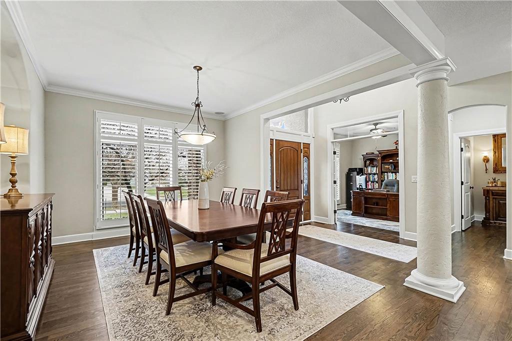 Welcome home to this stunning, highly sought-after Staley Farms community—where memories are made and lifestyle comes first. From the moment you arrive, the charming curb appeal sets the tone with a brick driveway, tile roof, and inviting back sitting porch with a cozy fireplace. The backyard is made for family time, featuring a fabulous patio and fire. With over 5,000 square feet, this beautifully updated two-story home offers 5 bedrooms, 4.1 baths, and a 3-car garage, providing plenty of space. Every inch has been thoughtfully updated with today’s family needs in mind. The main level is warm and welcoming with gleaming hardwood floors, abundant natural light, and a semi-open floor plan. A private home office with double doors offers a quiet work space. The heart of the home is the massive, newly remodeled kitchen—complete with an oversized island, quartz countertops, gas stove, walk-in pantry, and a sunny eat-in area that flows into the hearth room with a fireplace and built-ins. The conveniently located laundry room just off the kitchen adds ease to daily routines. An expansive living room with fireplace opens to the dining room, creating the ideal layout. Upstairs, the spacious primary suite is a true retreat with a sitting area and a beautifully remodeled bath featuring a steam shower, double vanities, and a walk-in closet. Three additional bedrooms with walk-in closets and two full baths complete the second level. The lower features a fifth bedroom/exercise room, full bath, a second family room, and a theater room. Recent updates include newer heating and cooling systems, new lighting, new carpet throughout, refinished hardwoods, new hot water tanks, and so much more. The home has been meticulously maintained and is truly move-in ready. Enjoy all that Staley Farms has to offer, including a clubhouse, golf course, pool, walking trails, and a strong sense of community. This is more than just a house—it’s a place to grow, gather, and create lasting memories.