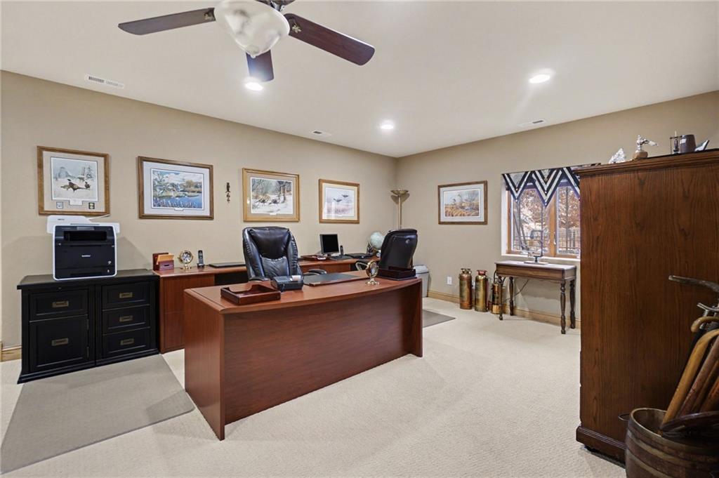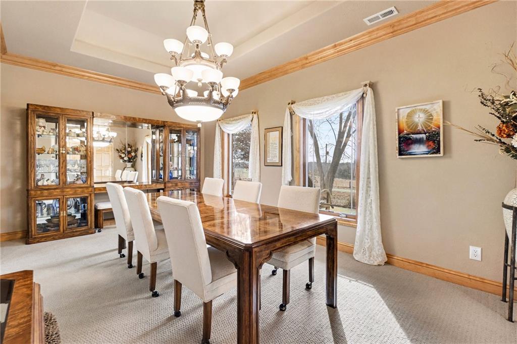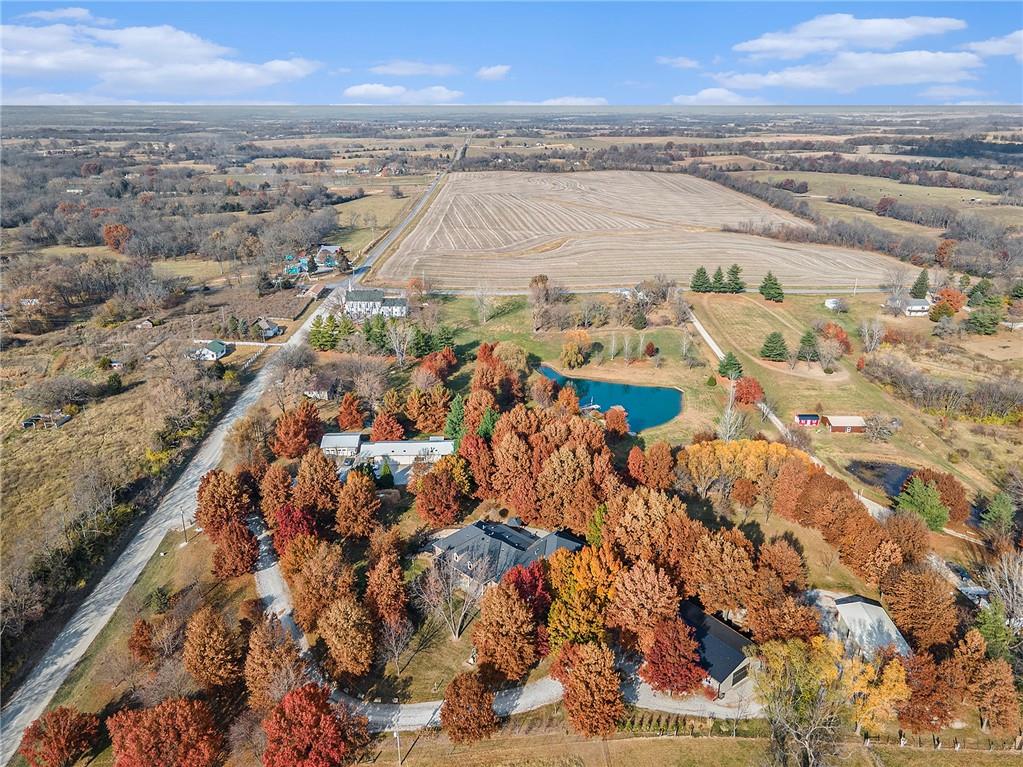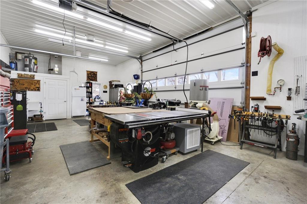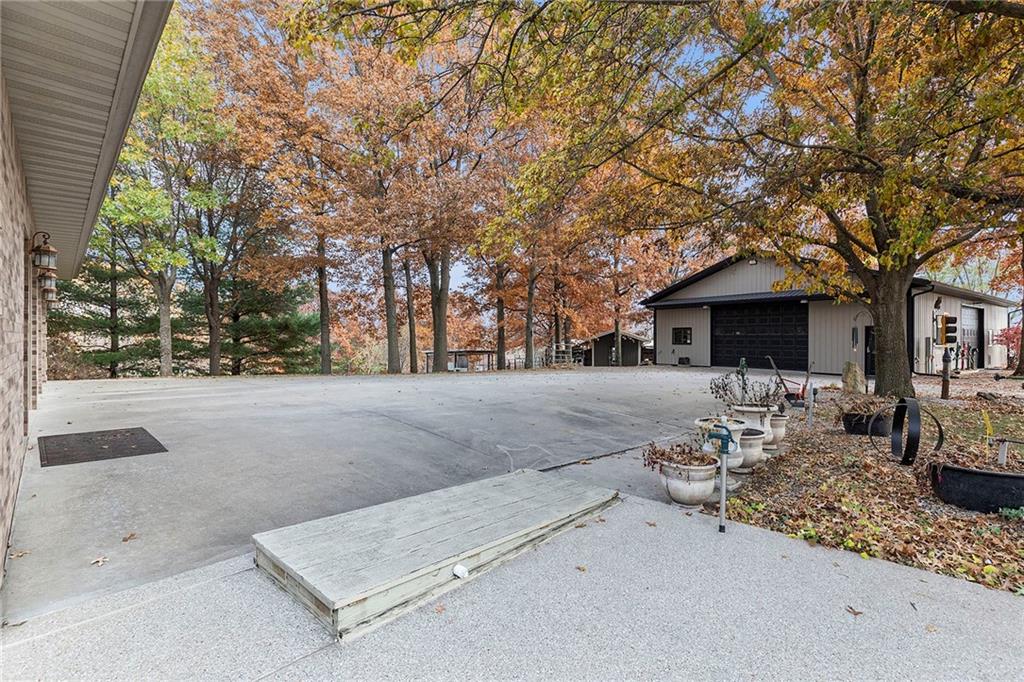 This breath-taking, custom-built brick estate is set on 3.94+/- Acres. Carefully maintained, this impressive property offers over 4,500 sqft of finished living space and boasting multiple well-equipped outbuildings that seamlessly blend convenience w/functionality. The main level offers a front formal dining room & a sun-filled family room overlooking the serene backyard. The exceptional kitchen includes stone counters, a large island, built-in appliances, a gas cooktop & opens seamlessly to the living room. A breakfast nook provides casual dining, while the oversized laundry room includes pantry & storage closets plus a convenient full bath. The primary suite is a true retreat w/vaulted ceilings, separate his-and-hers walk-in closets, & a spa-like ensuite showcasing a dual-sink vanity & center whirlpool tub. Vaulted ceilings, solid hickory cabinetry, trim & interior doors are found throughout, highlighting the quality craftsmanship. Secondary bedrooms are generously sized w/excellent closet space & nearby bath access. The walkout lower level expands the living space w/a large family/rec room, a den that could serve as a non-conforming 5th bed, a full bath & a wetbar ideal for entertaining. Efficiency upgrades include radiant in-floor heat, LP gas furnace, multiple A/C systems, a Bosch electric boiler, high-efficiency water softener & 13 solar tubes for abundant natural light. More features include Andersen casement windows, a newer composition roof, five solar roof fans & R49 attic insulation. Outdoor living shines w/open & covered patio areas, a custom firepit & concrete walkways. The beautifully landscaped grounds feature mature oak, white pine trees, fruit trees, a working windmill, gazebo & storm cellar. Outbuildings include a 40’x60’ insulated shop w/heat, A/C, water, sink & urinal; a 27’x84’ Cleary building w/(4) 16’ automatic overhead doors & electric; an insulated chicken coop, livestock building & fenced dog kennel w/water access.