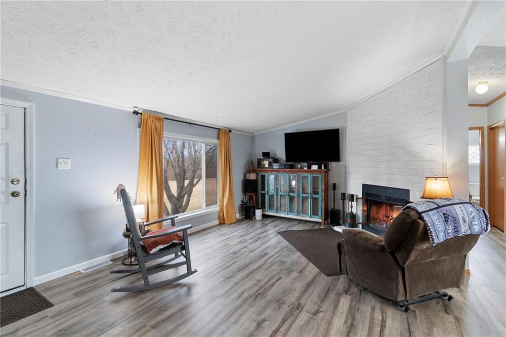 Nestled on 6.7 scenic acres with blacktop frontage, this 1999 well maintained, manufactured home offers the perfect blend of comfortable living and country charm. The main level features 3 bedrooms and two full bathrooms, a welcoming spacious living room with a wood-burning fireplace, and a formal dining area ideal for gatherings or use as a home office. The kitchen comes fully equipped with appliances. The walkout concrete basement is partially finished and includes a wood burning stove, offering additional living or recreational space with room to expand. The seller will also leave additional building materials. Major updates include a roof and an updated HVAC system. Outside the property truly shines with raised garden beds, a greenhouse, chicken coop, mature trees, and private trails - perfect for enjoying nature and local wildlife. There is also a detached two-car garage. While the home is on rural water, there is also a private well for added versatility including gardening! This property is ideal for buyers seeking a little piece of country living! Government loan buyers are welcome! Make your appointment today.