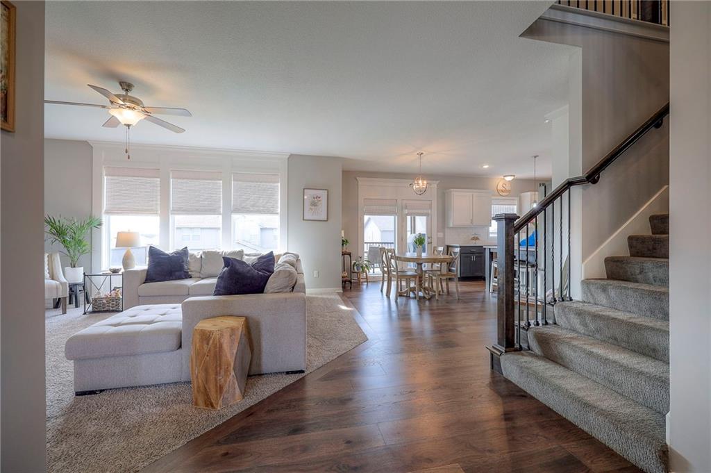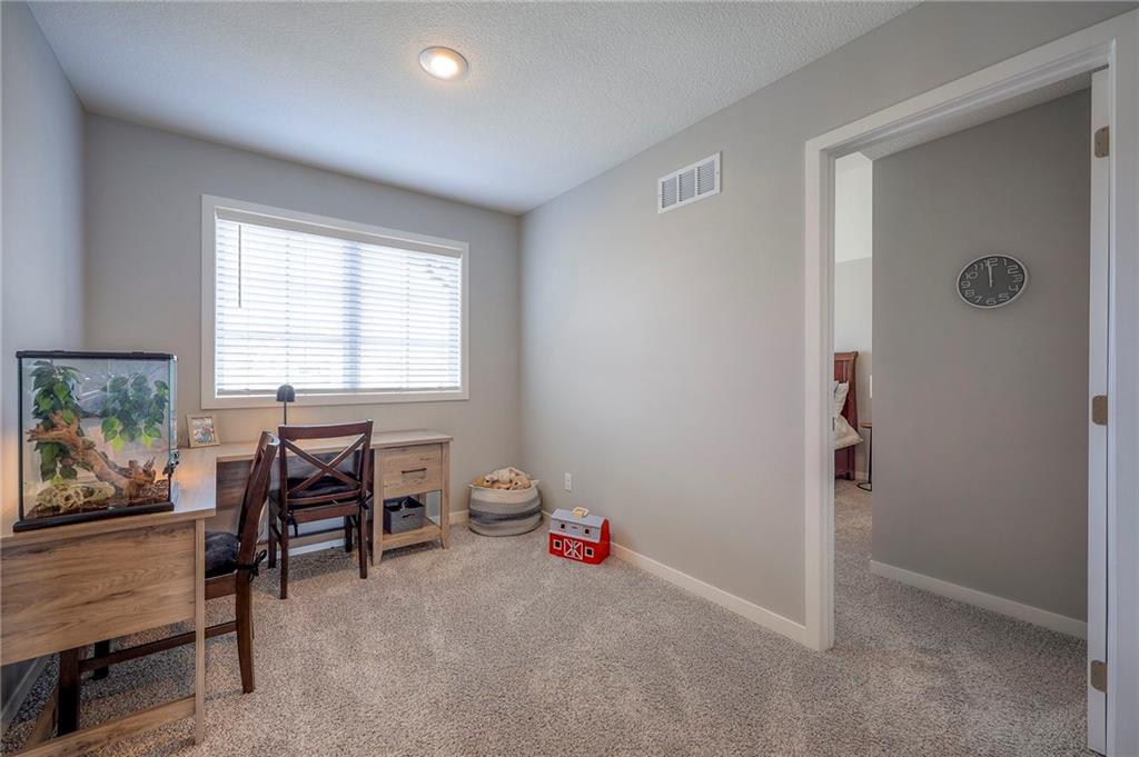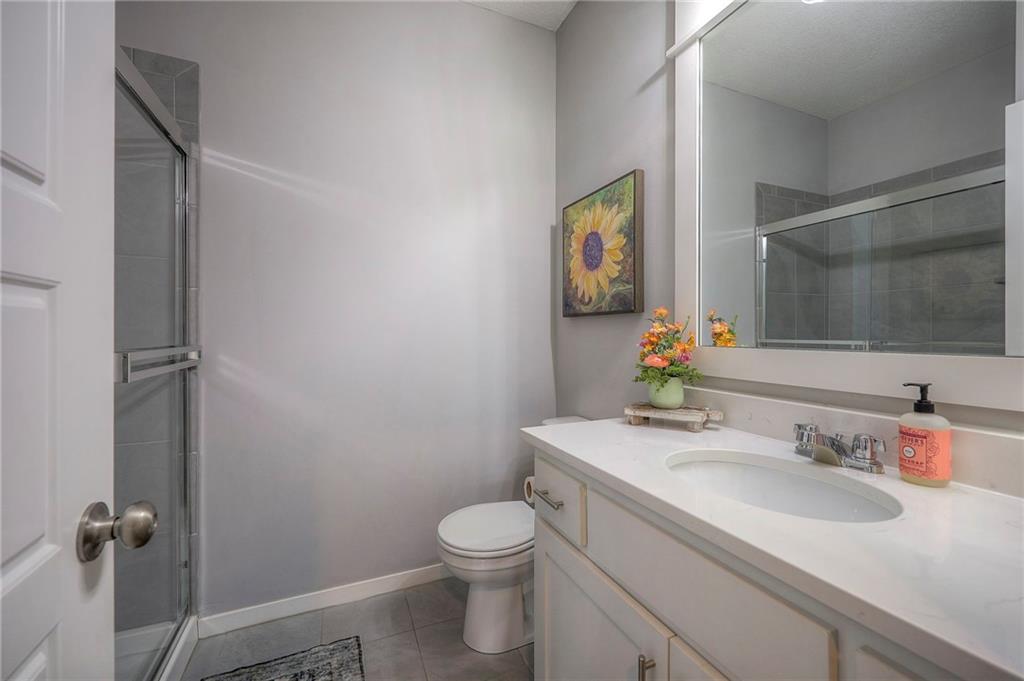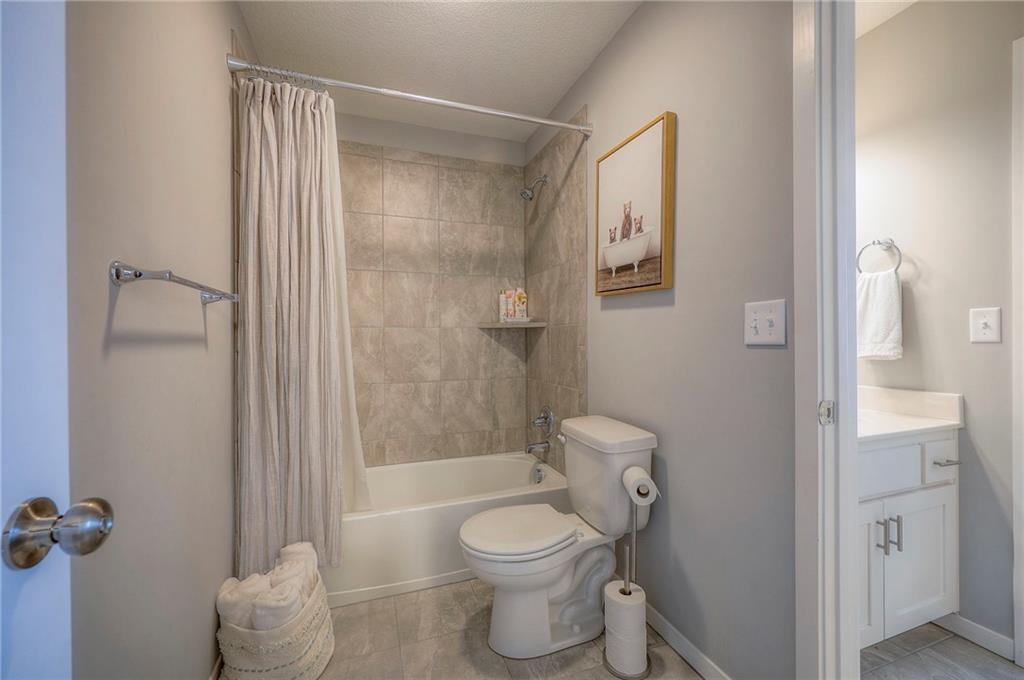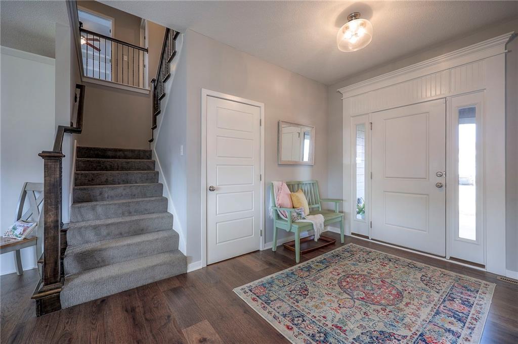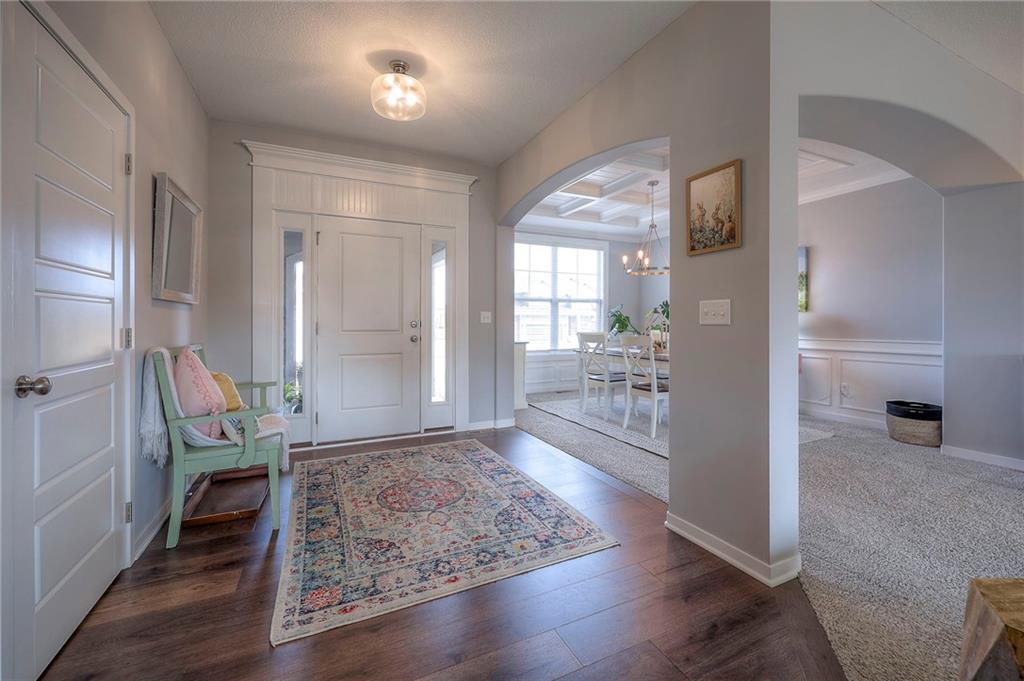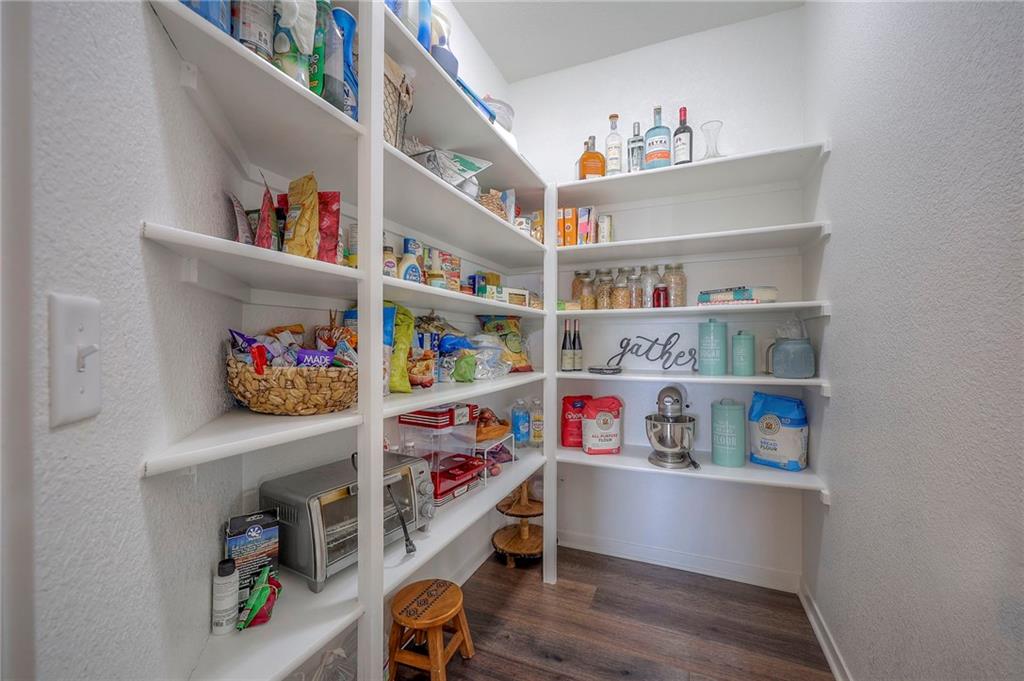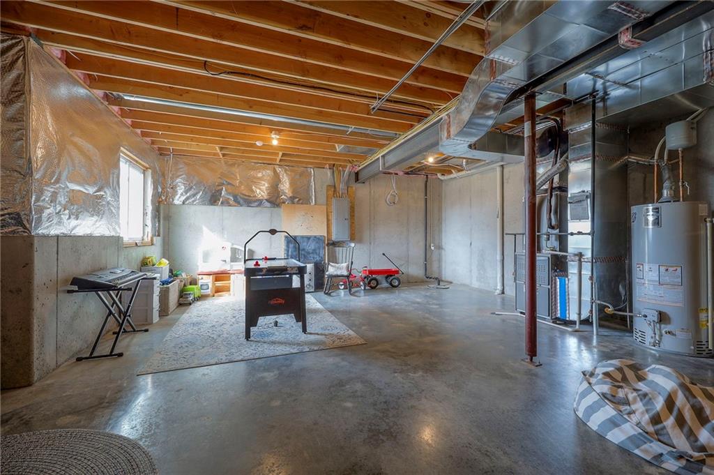 Move In Ready - with full landscaping, window blinds, metal fenced yard and screened porch with added stairs to get to yard (all items new construction does not come with) - This popular Levi II by Prieb Homes faces West, giving you ideal summer deck parties in the shade. Spacious entry, with formal dining room to left, and first floor 5th bedroom/office/flex room includes a closet and 3/4 bath. A must see open great room with fireplace and oversized windows streaming in tons of natural light. Bright kitchen includes center island, granite countertops, custom cabinets with upgraded hardware and soft close drawers & doors, built in microwave, large walk in pantry, stainless appliances and breakfast room. Beautiful hardwood floors throughout the entry kitchen and breakfast room. Second floor features 3 more bedrooms with walk in closets. Two bedrooms with Jack & Jill bath, and one bedroom has its own private bath, A beautiful private primary suite with vaulted ceiling and natural light through the windows. This spacious bedroom includes a cozy sitting area and huge walk in closet. The spa-like bath features double granite vanity, tile floors, walk in shower and separate soaking tub. The oversized walk in closet leads to the laundry room with folding table and room for your baskets. Also, attached to the hallway, it is a convenient laundry room for all. Another great feature is a storm room which gives a great peace of mind during a storm. Tons of storage in the unfinished basement. Prairie Farms is adjacent to the newly renovated Lake Olathe. Offering a large community pool, cabana, playground and walking trails, Prairie Farms is a great place to call home!