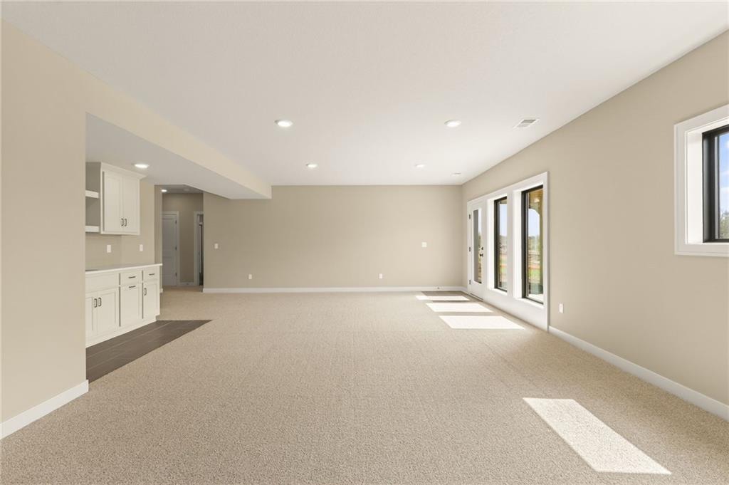 The McKinley by Hearthside Homes is a stunning Reverse 1.5 Story offering 4 bedrooms, 3 baths, and over 2,800 sq ft of well-appointed living space that blends comfort, craftsmanship, and modern style. The open-concept main level features hardwood floors, abundant natural light, and a great room anchored by sleek linear fireplace. The kitchen impresses with quartz countertops, a contrasting island and hood, and a black Silgranit sink—balancing beauty and function. Dining area opens to covered deck overlooking the backyard. Home ready-MID-APRIL. The primary suite delivers a true retreat with a freestanding tub, tiled shower, dual vanities, and a spacious walk-in closet that connects directly to the laundry room. A secondary bedroom, full bath, and laundry complete the main level. The finished walkout lower level adds a large rec room with wet bar, two bedrooms with walk-in closets, a full bath, and generous storage space. An oversized patio enhances outdoor living and is perfect for entertaining or quiet relaxation. Mid April completion date. This home is built with double-wall construction, I-joist floor systems, and engineered roof trusses for strength and durability. Every Hearthside home also includes a video-recorded sewer scope, third-party duct cleaning, and a third-party inspection process to help ensure quality and peace of mind. Hearthside Homes has been building in the Kansas City area since 1987 and is known for quality construction and a streamlined building experience. ***Hearthside includes an exceptional warranty package: 1 year of whole-house coverage, 2 years of mechanical systems protection, and a 10-year major structural warranty. Plus, a third-party inspection with sewer line review and HVAC duct cleaning.*** Outstanding community amenities include; swimming pool, pickle ball court, 3 acre fishable pond, outdoor pavilion area w/2 fireplaces, rentable clubhouse with kitchen & party space & internet!