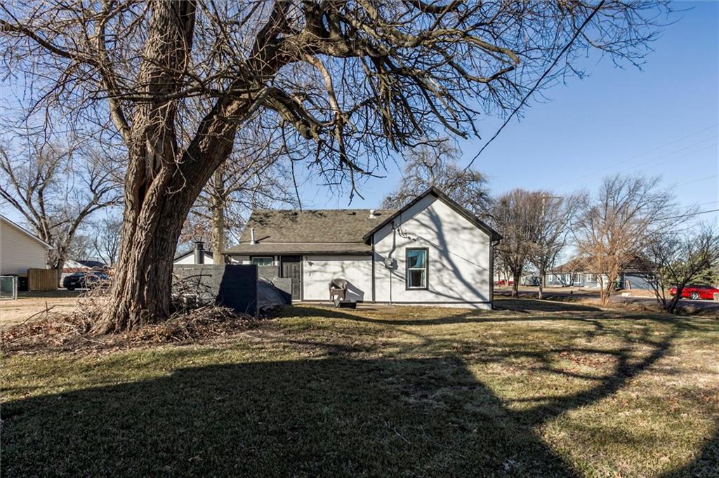 Charming, move-in-ready 3 bed, 1 bath home with modern updates throughout, located on a large corner lot. Perfect for a first-time home buyer, this home features a cute, inviting front porch, spacious backyard, and storm shelter for added peace of mind. Conveniently located just a few minutes from Hwy 169 and an easy 18 minute commute to downtown Olathe. Updated and ready for new owners, this one is a must see!