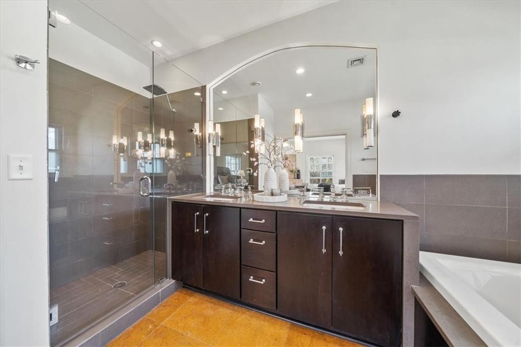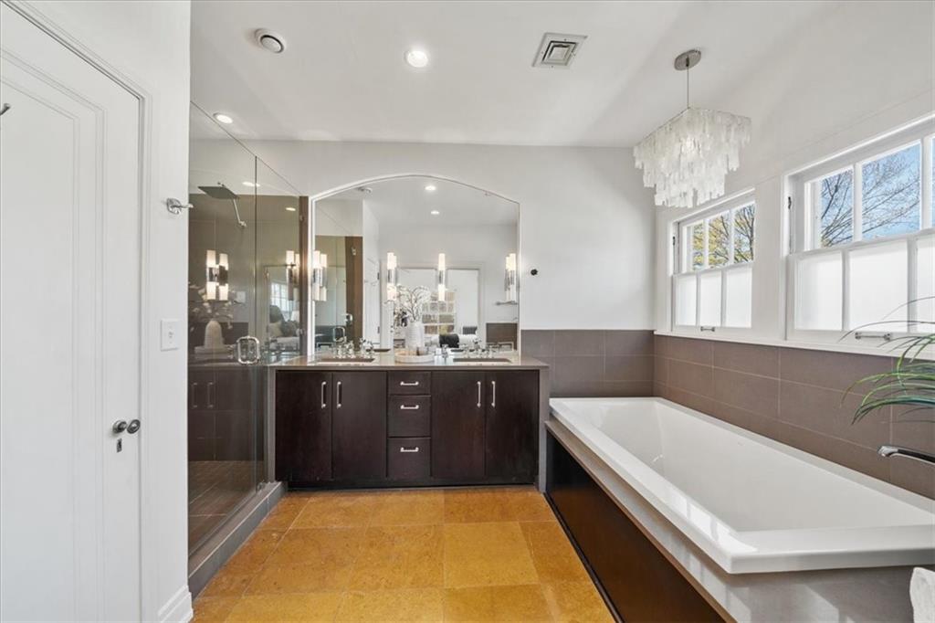 Thoughtfully updated and rich in character, this stunning Spanish-style home blends timeless architecture with modern improvements in the heart of Brookside. Recent upgrades—including fresh paint, new attic insulation, updated electrical, and refreshed landscaping—offer peace of mind while preserving the home’s original charm. Step through the solid wood double doors into an impressive living room filled with natural light from oversized windows. This remarkable space features beautifully maintained hardwood floors, built-in shelving, a stone fireplace, and striking light fixtures that create a warm yet sophisticated atmosphere. Tall ceilings and detailed molding add to the home’s classic appeal. The spacious dining room is ideal for hosting, comfortably accommodating large gatherings and flowing seamlessly into the modern kitchen, complete with granite countertops and ample cabinetry. Just beyond, the sunroom offers a versatile space perfect for a home office, or playroom, with direct access to the expansive backyard—large enough for a garden, pool, and still plenty of green space. The main level also features one of two primary suites, highlighted by a charming clawfoot tub, along with a convenient laundry area and an additional flexible room ideal for a playroom or den. The home’s Spanish influence continues with a beautifully tiled staircase, adding a unique touch. Upstairs, you’ll find two generously sized secondary bedrooms and a full bath. The second-level primary suite offers a true retreat, featuring a massive walk-in closet, private balcony access, and a fully updated, modern bathroom. Additional highlights include a 3-car garage, a large front yard, and a blend of hardwood and terracotta tile flooring throughout. Ideally located just minutes from Brookside favorites like the Trolley Track Trail, Earl’s Premier, and The Brooksider, with easy access to the Plaza and downtown Kansas City, this home offers a rare combination of character, space, and location.