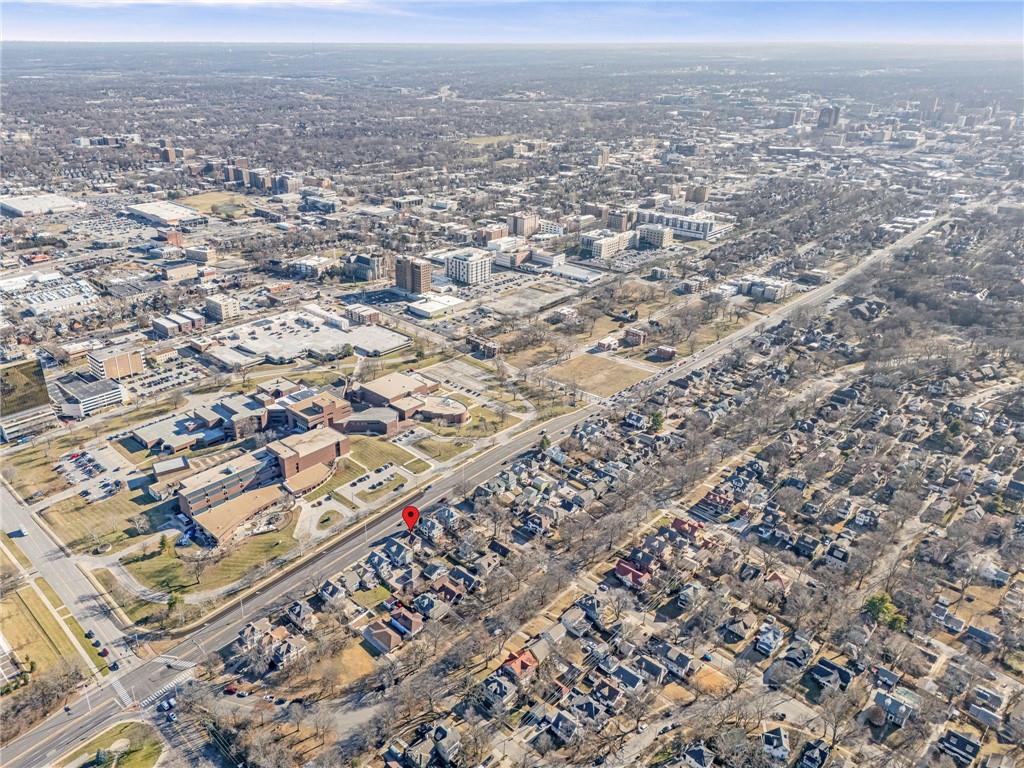 Step into the charm of this rare 1910 Kansas City home, where timeless character meets an unbeatable location near downtown, the Plaza, and across the street from Metropolitan Community College. Offering 4 bedrooms and 2.5 bathrooms, this property blends historic charm with spacious, functional living. From the moment you arrive, the inviting front porch with brick detailing welcomes you inside. The grand foyer showcases beautiful natural woodwork that continues throughout much of the home, from the staircase and trim to the stunning decorative windows. Hardwood floors add warmth and character while enhancing the home’s timeless architectural features. The main level features generous spaces ideal for entertaining. The light-filled living room includes a beautiful fireplace and flows seamlessly into the dining room, highlighted by large windows. The kitchen offers an eat-in option and plenty of space for everyday living. Bedrooms are thoughtfully arranged across the upper levels. The second floor includes three bedrooms and a full bathroom, while the third level features a spacious bedroom with its own full bathroom, perfect for a private retreat or guest suite. Outside, enjoy a lovely deck and fenced yard, ideal for relaxing or hosting gatherings. The extended driveway provides ample parking for multiple vehicles, a rare find for the area. With its character, space, and convenient location, this home offers a wonderful opportunity in the heart of Kansas City.
