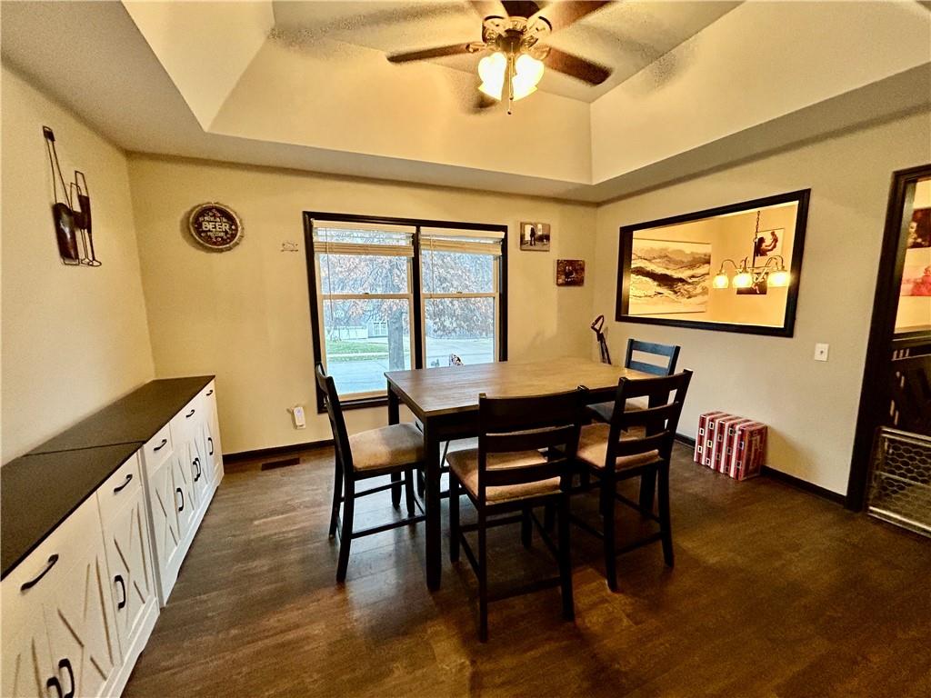 Beautiful raised ranch home on a quiet road. Situated convenient to I-29, Frederick ave, and N belt highway. Enjoy cozy winter nights next to the fireplace or entertain guests in the finished basement rec space. This home boasts 3 beds with additional 4th non conforming bedroom on basement level, 2 and half baths, formal dining, eat in kitchen, large fenced in backyard with deck, large 2 car basement garage and bedroom level laundry. Updates include flooring, newer roof, furnace, hot water tank, A/C, sprinkler system and appliances.