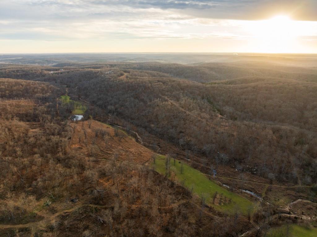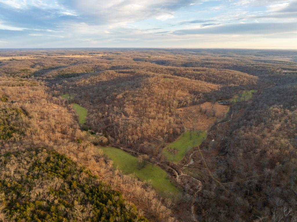 Located just east of Osceola, in the heart of St. Clair County, Missouri, lies this truly world-class 485.1± acre hunting and recreational holding. it’s evident that years of thoughtful management, pride of ownership, and intentional improvement have gone into creating a premier whitetail and turkey hunting sanctuary. Featuring the perfect balance of gently rolling timbered ridges, fertile creek bottoms, open ridgetops with an abundance of water throughout. Two scenic, rock-bottom creeks wind through the heart of the property and create the perfect terrain and layout for this wildlife paradise. Fifteen established food plots are strategically placed throughout the farm. Seven perfectly positioned elevated blinds with proven locations create a turnkey setup for serious hunters. One of the standout features is the extensive trail system with over 10 miles of maintained trails.The land management and wildlife history on this property is exceptional, with active timber management, warm season grass plantings, fertlized foodplots, chestnut and fruit tree orchards and much more. Adding to its long-term value and seclusion, the farm adjoins a 3,000+ acre Boy Scouts of America Camp along the northern boundary, offering a massive buffer of protected land. For additional recreation, Truman Lake is just a short drive to the west.The improvements are well thought out and ideal for hosting family and friends. The cabin features two large bedrooms and two full bathrooms, along with a comfortable living room, kitchen, and covered front and back porches—all under a durable metal roof. The large outbuilding is equally impressive, offering a spacious workshop, equipment storage, and well-designed living quarters that include a locker room, bunkroom, full bathroom, kitchen, and laundry. Access is excellent, with frontage on State Highway 82 and a well maintained county road. Road frontage is fully fenced with multiple gated entrances providing great access to the property.