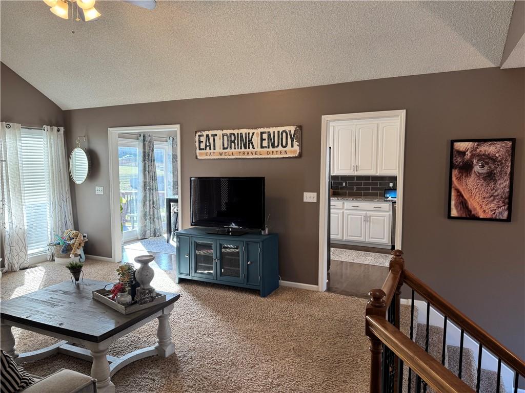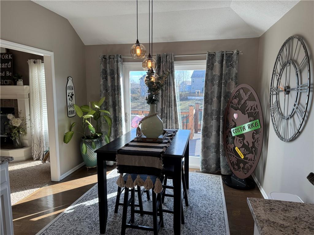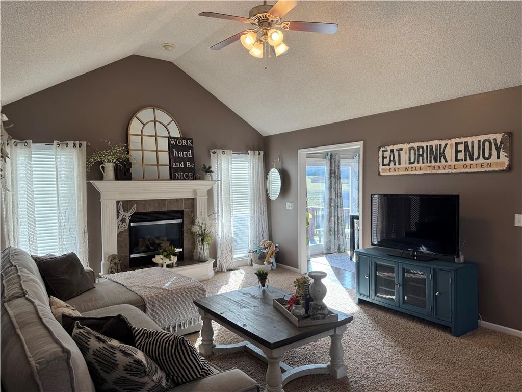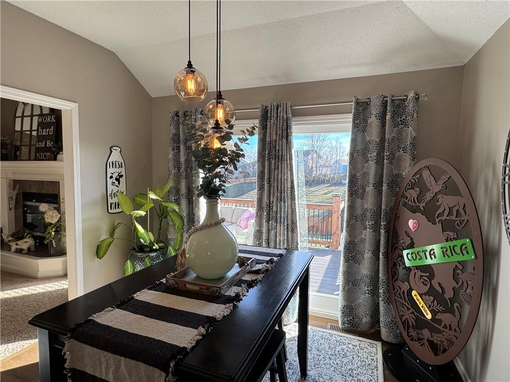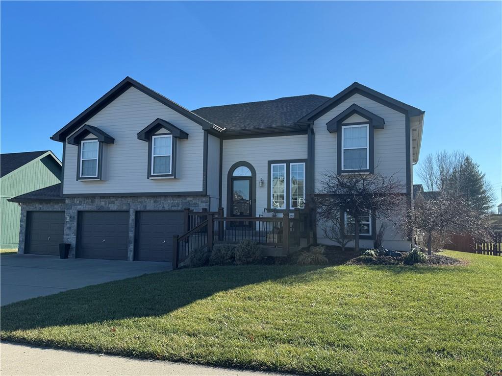 Welcome home to this beautifully maintained 3 bedroom, 2.5-bath residence offering space, style, and functionality throughout. The main level features soaring ceilings, abundant natural light, and a welcoming living room centered around a cozy fireplace- perfect for everyday living or entertaining. The kitchen is both stylish and functional with white cabinetry, granite countertops, stainless steel appliances, tile backsplash, and plenty of counter and storage space. The adjacent dining area opens to the deck, creating an easy flow for indoor-outdoor living. The spacious primary suite offers a peaceful retreat with a tray ceiling, generous closet space, and a private ensuite bath featuring a soaking tub and natural light from the glass block window. Two additional bedrooms and a full bath complete the main level. The finished lower level provides even more living space with a family room, second fireplace, half bath, and charming custom nook - ideal for a play area, or pet retreat. This level is perfect for movie nights, guests, or a home office setup. Enjoy the outdoors from the elevated deck overlooking the backyard, with stairs leading down to the patio- ideal for grilling, relaxing, or entertaining. Addition highlights include a 3-car garage, neutral color palette, and thoughtful finishes throughout. HOA amenities include a neighborhood pool, and a walking trail just steps away! This home is move-in ready with space to live, relax, and entertain- inside and out! Don't miss your chance to see this one in person.