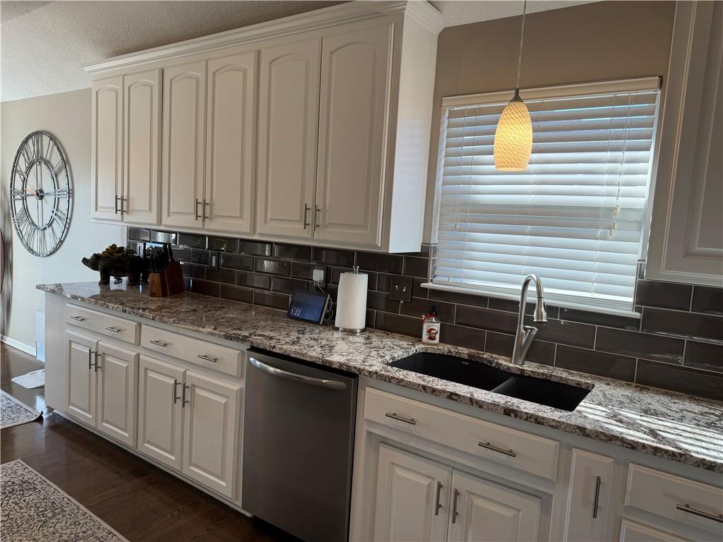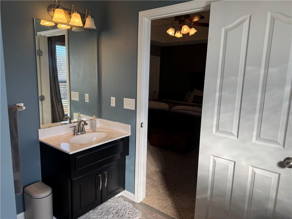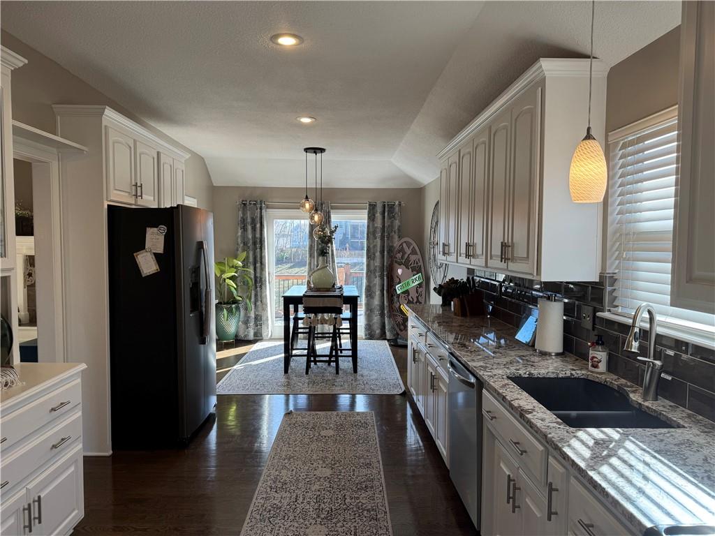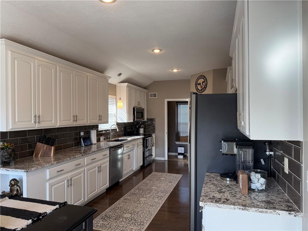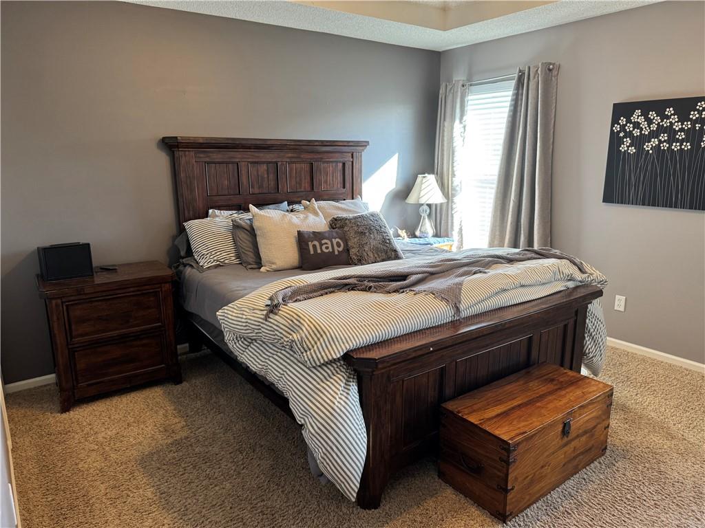 Welcome home to this beautifully maintained 3 bedroom, 2.5-bath residence offering space, style, and functionality throughout. The main level features soaring ceilings, abundant natural light, and a welcoming living room centered around a cozy fireplace- perfect for everyday living or entertaining. The kitchen is both stylish and functional with white cabinetry, granite countertops, stainless steel appliances, tile backsplash, and plenty of counter and storage space. The adjacent dining area opens to the deck, creating an easy flow for indoor-outdoor living. The spacious primary suite offers a peaceful retreat with a tray ceiling, generous closet space, and a private ensuite bath featuring a soaking tub and natural light from the glass block window. Two additional bedrooms and a full bath complete the main level. The finished lower level provides even more living space with a family room, second fireplace, half bath, and charming custom nook - ideal for a play area, or pet retreat. This level is perfect for movie nights, guests, or a home office setup. Enjoy the outdoors from the elevated deck overlooking the backyard, with stairs leading down to the patio- ideal for grilling, relaxing, or entertaining. Addition highlights include a 3-car garage, neutral color palette, and thoughtful finishes throughout. HOA amenities include a neighborhood pool, and a walking trail just steps away! This home is move-in ready with space to live, relax, and entertain- inside and out! Don't miss your chance to see this one in person.