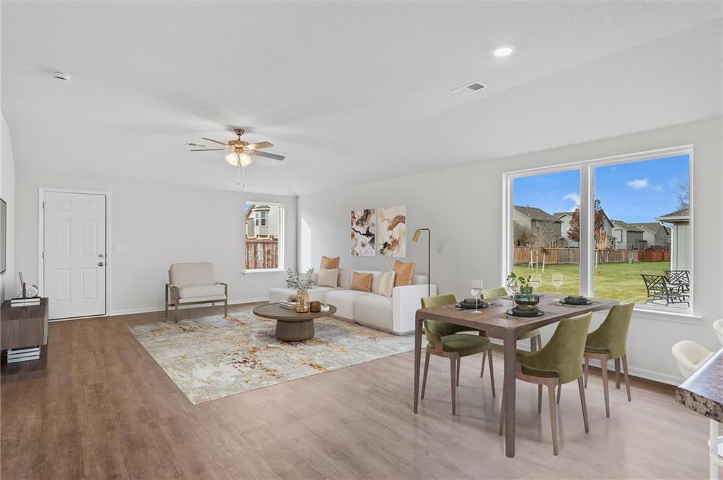 This new single-story home offers ample space to live and grow. Three bedrooms boast a private location near the entry, and a luxurious owner’s suite is nestled into a private rear corner, complete with a full bathroom and walk-in closet. An open-concept layout encourages simple transitions and multitasking, with a nearby patio for simple indoor-outdoor living. This homesite has a uniquely private backyard with a LARGE COVERED PATIO!! Hard to find 4 bedroom ranch! Photos are of another home but floorplan is correct. Also, photo of selections are what is going into the home for sale.