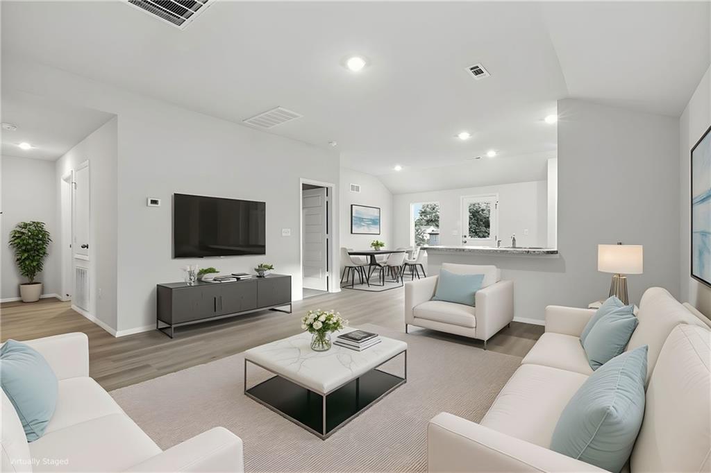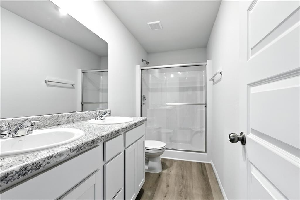Our popular Armstrong plan is a single-story home that is host to a spacious and flexible open-concept layout shared between the kitchen, living and dining areas for simple everyday transitions and multitasking. Two bedrooms share a private hallway, while the luxe owner’s suite boasts a private location at the back of the home, complete with a full bathroom and walk-in closet. Photos are of a finished home. The floorplan is the same. The photo of the colors are the colors that will be going into the home. The additional photo of the Ice colored Quartz is going in the kitchen.
