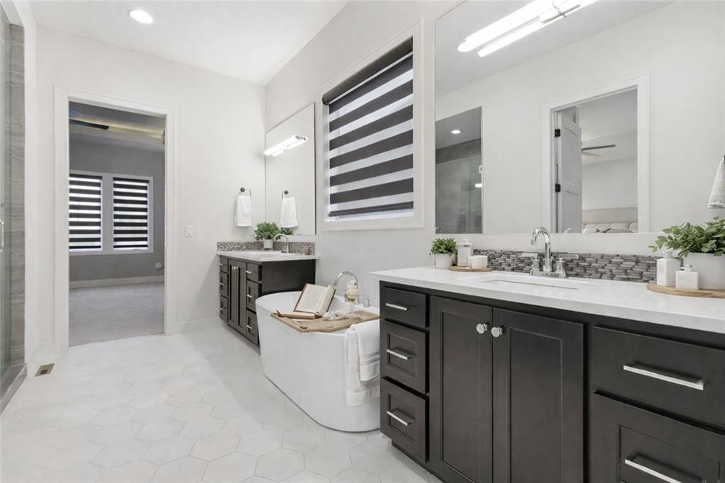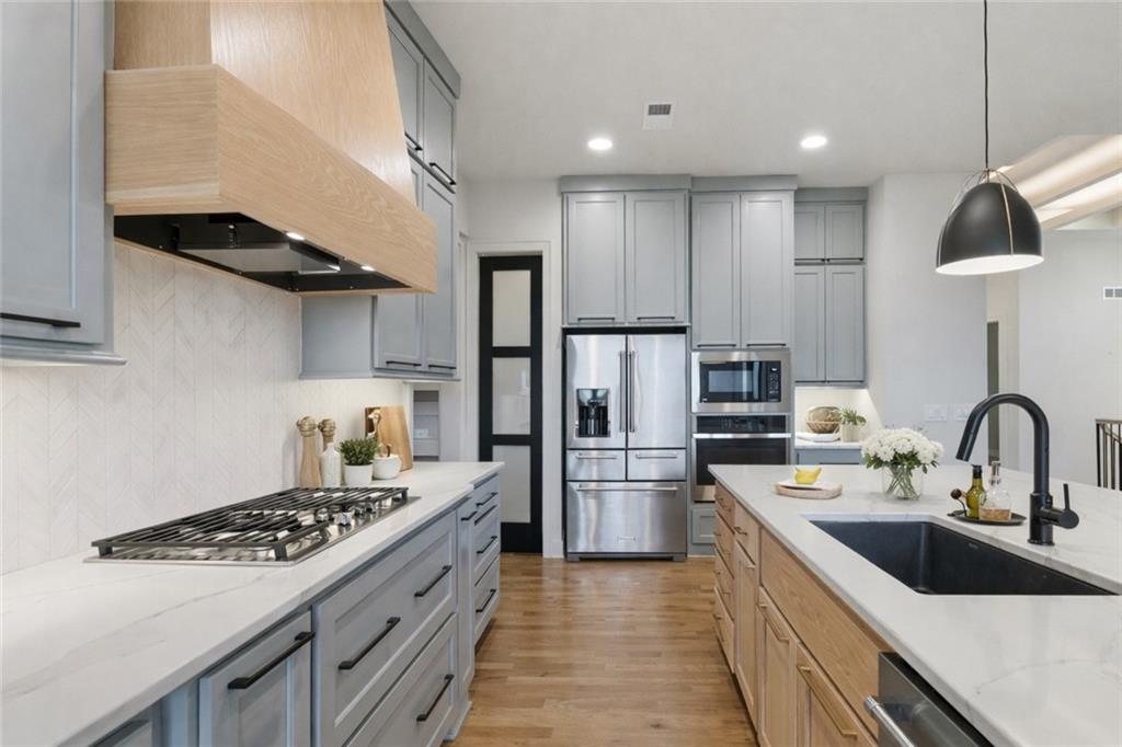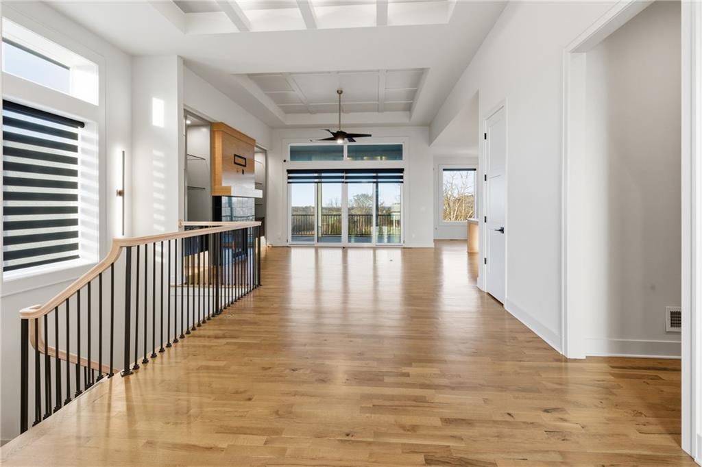 Built in late 2022 by the esteemed Don Julian Builders, this beautifully designed Reverse 1.5 story home is tucked within the premier Bristol Highlands Villas—where maintenance-provided living meets the peace and privacy of rolling hills and protected green space. Just minutes from Shawnee Mission Park, scenic trails and lakes, Lenexa City Center, dining, shopping, De Soto schools, and highway access—yet perfectly secluded—this home truly offers the best of both worlds. Thoughtfully designed for main-level living, the primary suite is a private retreat featuring separate vanities, luxurious soaking tub, walk-in shower with bench, and a spacious walk-in closet with direct access to the laundry room . A stylish powder room for guests and a dedicated office with double doors add both function and flexibility upstairs. The great room features custom built-ins, gas fireplace, and a seamless flow to the covered + screened deck overlooking tranquil green space with privacy! The kitchen—designed for entertaining and everyday living, showcases an oversized island with storage and seating, custom cabinetry to ceiling, quartz, and walk-in pantry. All SS appliances stay, including a newer KitchenAid dishwasher and high-end KitchenAid refrigerator! The walkout lower level is ideal for guests and gatherings, featuring a chic wet bar with beverage fridge, built-in microwave, and island. A cozy family room with slider access to the covered patio is perfect for movie night. One bedroom enjoys easy access to a full hall bath, while 2 additional bedrooms share a Jack-and-Jill bathroom with tub—perfect for hosting family & visitors. Features include high-efficiency HVAC, Lennox smart thermostat, ADT security, automatic privacy screens for the patio and deck, automatic blinds throughout, hardwood floors, and a coveted location backing to community green space. Low-maintenance living. High-end finishes. Don’t let this one pass you by—homes like this are truly special.