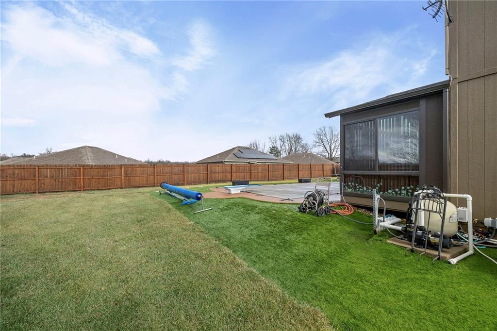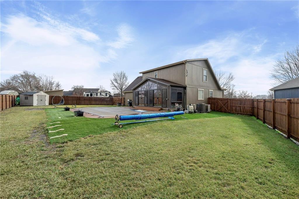 This well-maintained 1.5 story, 3-bedroom, 2.5-bath home offers space, flexibility, and standout outdoor living on two in-town lots totaling over just 1/2 acre. Inside, you'll find a clean, thoughtfully cared-for home with a main-level primary suite featuring a private bath and walk-in closet. The kitchen is a true highlight, showcasing stainless steel appliances (all staying) and flowing easily into the dining area. Upstairs you can enjoy the jack and jill bathroom with each bedroom having their own personal sink/vanity, they also each have a walk-in closet. In 2024, an all-season sunroom addition was completed, complete with its own mini-split system. This space connects seamlessly from the dining room to the sunroom and out to the backyard, creating an ideal layout for everyday living and entertaining. The backyard is designed for summer enjoyment with a saltwater inground pool, complete with cover, automatic vacuum/cleaner, privacy fencing, and a storage shed. The pool was properly winterized this fall for peace of mind. Additional features include an unfinished basement with egress window, ready for future living space. Roof is approximately 2 years old, attached garage with an epoxy finished floor. The additional lot which is included in the total 1/2 acre also includes a 1 car detached garage measuring 24x17 with concrete floors. This property offers a rare combination of in-town convenience, outdoor space and future potential, making it a great opportunity for buyers looking to personalize and grow into their next home!