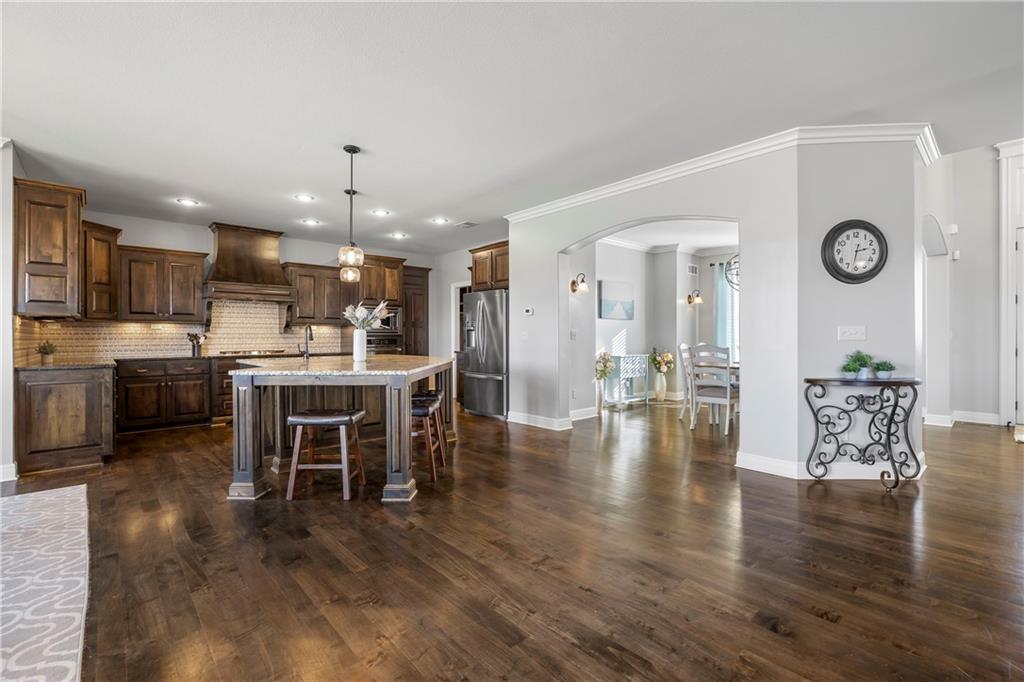 RARE BLUE VALLEY BEAUTY THAT BACKS TO GREENSPACE!!!! Come check out this beautiful two-story home offering over 4600 square feet, 5 bedrooms, 6.5 bathrooms and situated on a daylight lot backing to community GREENSPACE! The 'Hepton' floorplan was thoughtfully designed with expansive living and entertaining areas, a huge kitchen island plus a butler pantry. All bedrooms feature their own PRIVATE EN-SUITE BATHROOMS and the finished lower level includes a bar and sizeable rec room with potential to add a 6th bedroom if needed. Bonus features include hardwood maple floors, granite tops, multi zone irrigation and hardwired security system. Conveniently located near Blue Valley West High, Pleasant Ridge Middle and Cedar Hills Elementary.