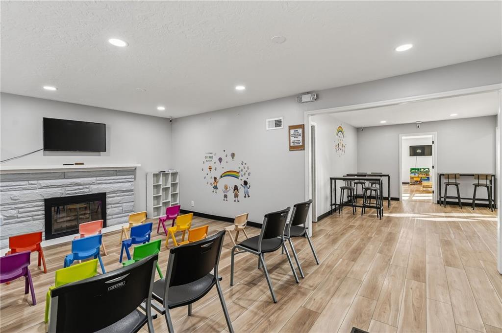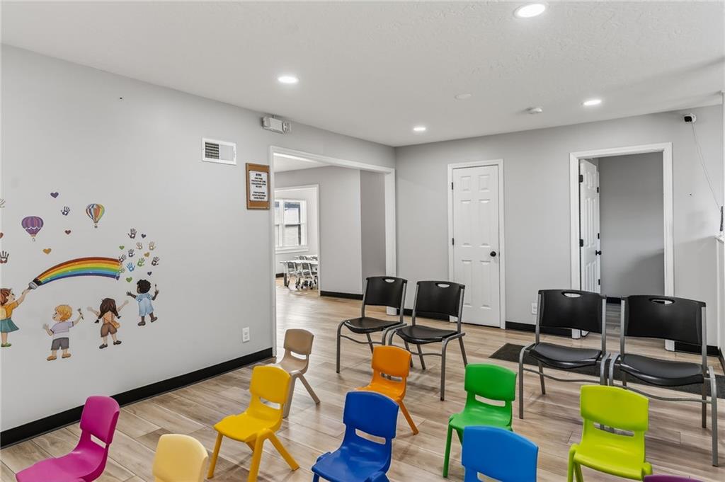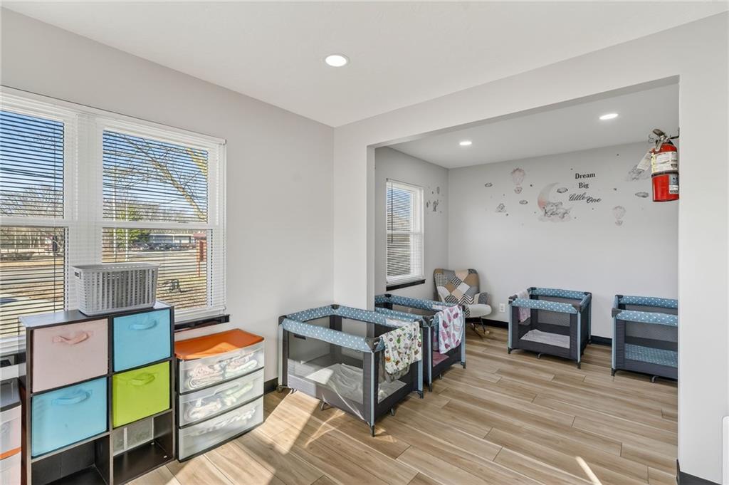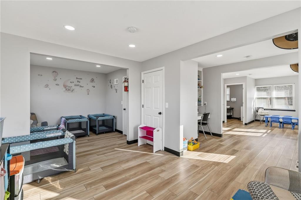 This beautifully newly remodeled daycare facility is designed to provide a safe, engaging, and nurturing environment for children. The property features a welcoming common area, three spacious and thoughtfully designed classrooms, four well-appointed bathrooms, and a dedicated administrative office to support daily operations. Additional amenities include a fully equipped kitchen, pantry, laundry room, ample storage throughout, two fireplaces, and an unfinished basement offering the potential to add additional classrooms or storage space. The facility also includes a spacious two-car garage and a vending machine for added convenience. For enhanced safety and peace of mind, the building is equipped with a security system and an interior sprinkler system. A secure outdoor playground provides ample space for active play and developmental activities. Throughout the facility, modern upgrades and child-friendly finishes create a warm and welcoming atmosphere for both families and staff. This turnkey daycare presents an excellent opportunity for operators seeking a clean, functional, and well-equipped space to support a growing childcare program.