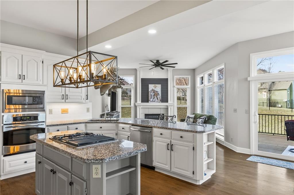 Welcome home to the Fairways, where comfort, space, and convenience all come together. The open kitchen features granite countertops, stainless steel appliances, pantry pull-outs, and updated lighting—perfect for everyday living or entertaining. Cozy up by one of the fireplaces in the hearth room or spacious great room with newer carpet. The oversized primary suite is a true retreat with its own fireplace, huge walk-in closet, soaking tub, and new walk-in shower. Secondary bedrooms are generously sized with walk-in closets and updated baths. Fresh interior paint and recent updates throughout make this home move-in ready. An unfinished basement offers 1,000+ sq ft of future living space and is already stubbed for a bath—ideal for a gym, media room, or extra bedrooms. Enjoy outdoor time on the updated deck with aluminum railing. Located near Hodge Park and Shoal Creek Golf Courses, highways, shopping, and dining. Schedule your showing before it’s gone!